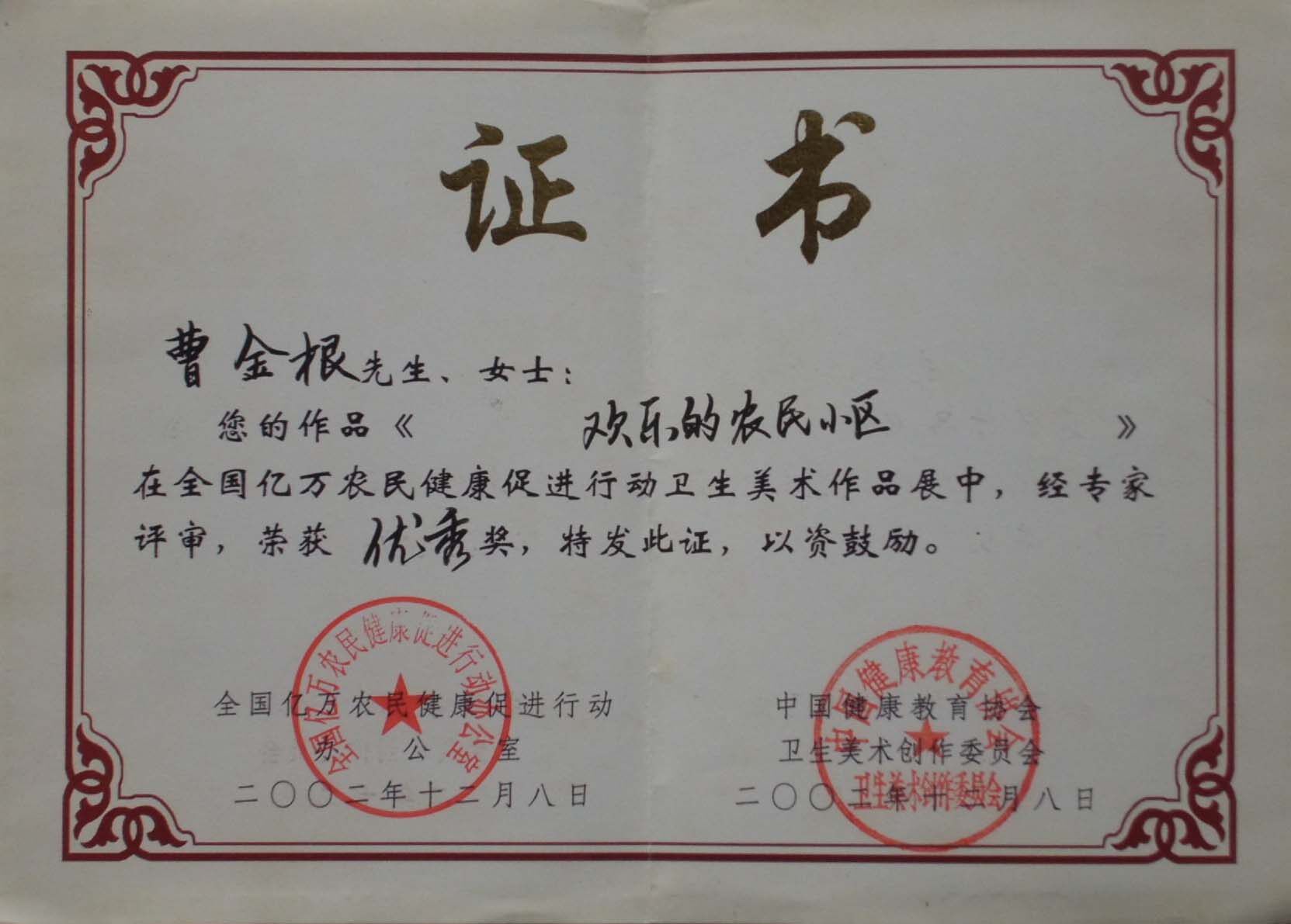 2006Год10луна18Daily была награждена народным правительством округа Джиншан“Джиншан Фермерский художник”титул