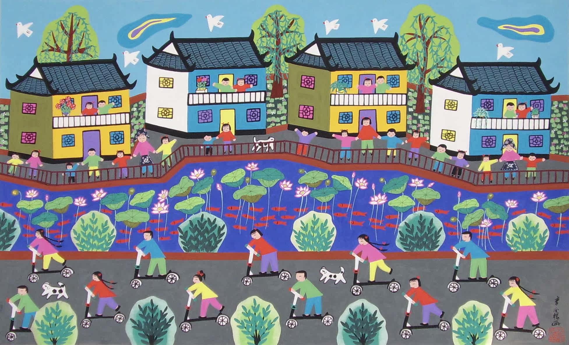 В ноябре 2008 года в Министерство культуры Китайской Народной Республики была введена «Водная деревня» и организовано народным правительством провинции Цзянсу“Отмечать 30 -летие реформ и открыть—2008 китайские фермеры рисуют выставка”Работа была включена в «Коллекцию китайских фермерских живописи 2008 года».