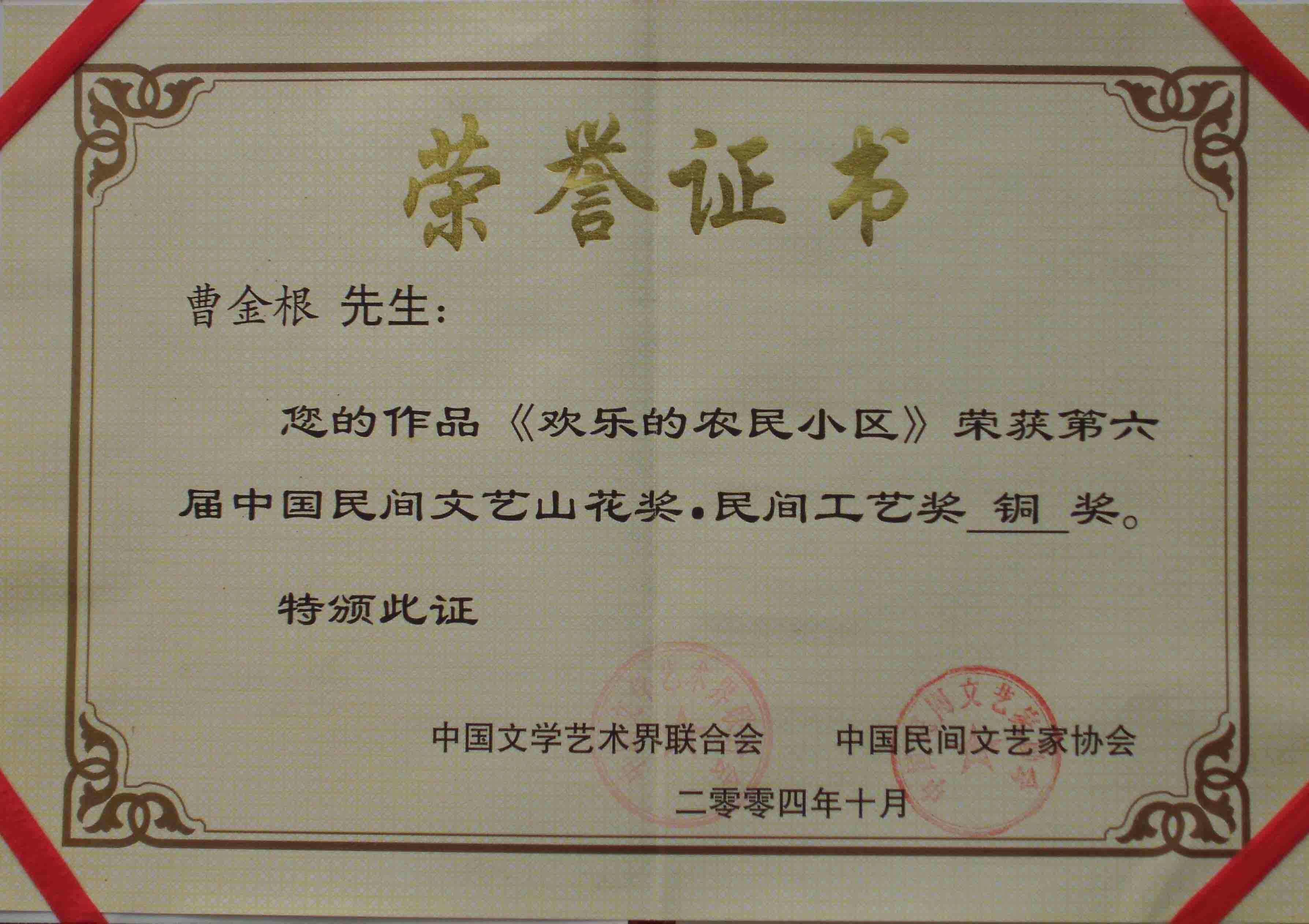 В октябре 2004 года 3 -я международная гражданская выставка и 2 -й Китай <Тяньцзинь博 Экспо -бутик для народного искусства, получениеТяньцзиньНародное правительство, китайская федерация литературы и искусства, Ассоциация китайской народной литературы и художников и Международная организация ЮНЕСКО.