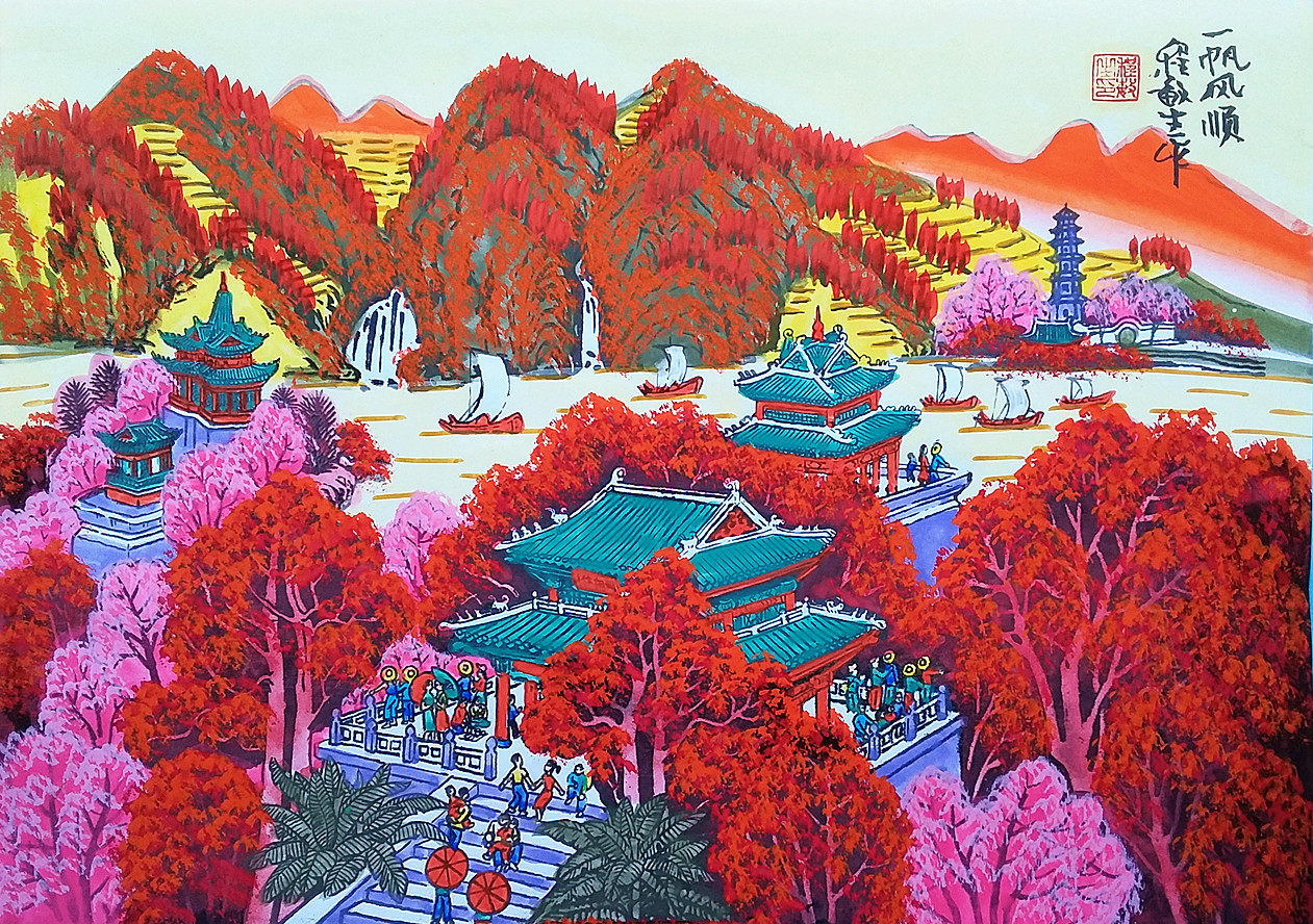 Один парусный спорт и гладкая осень, туристические горы, Red Ye Wanshan Red, картины фермеров округа Ченгмин Шенгу 52x38см