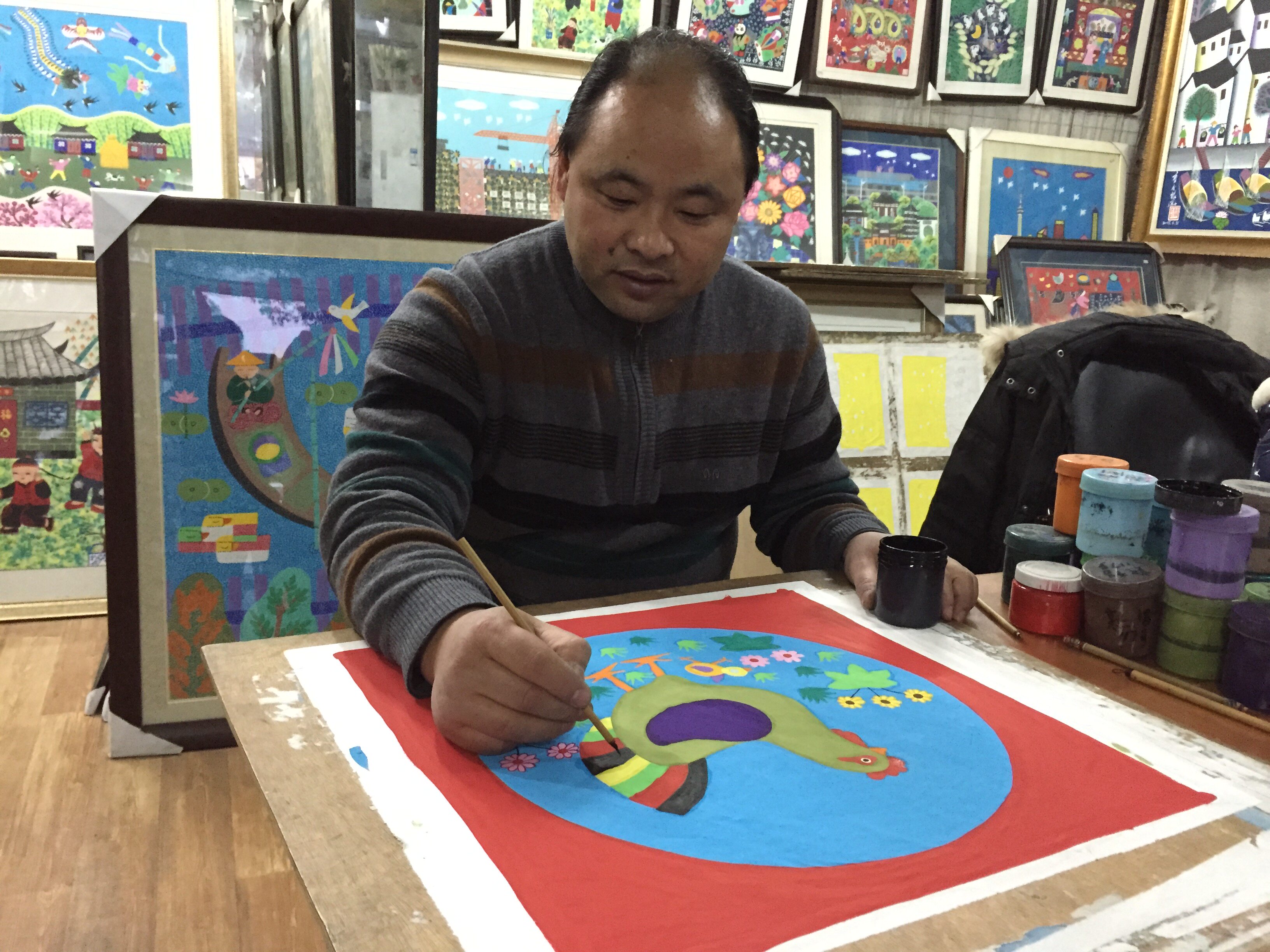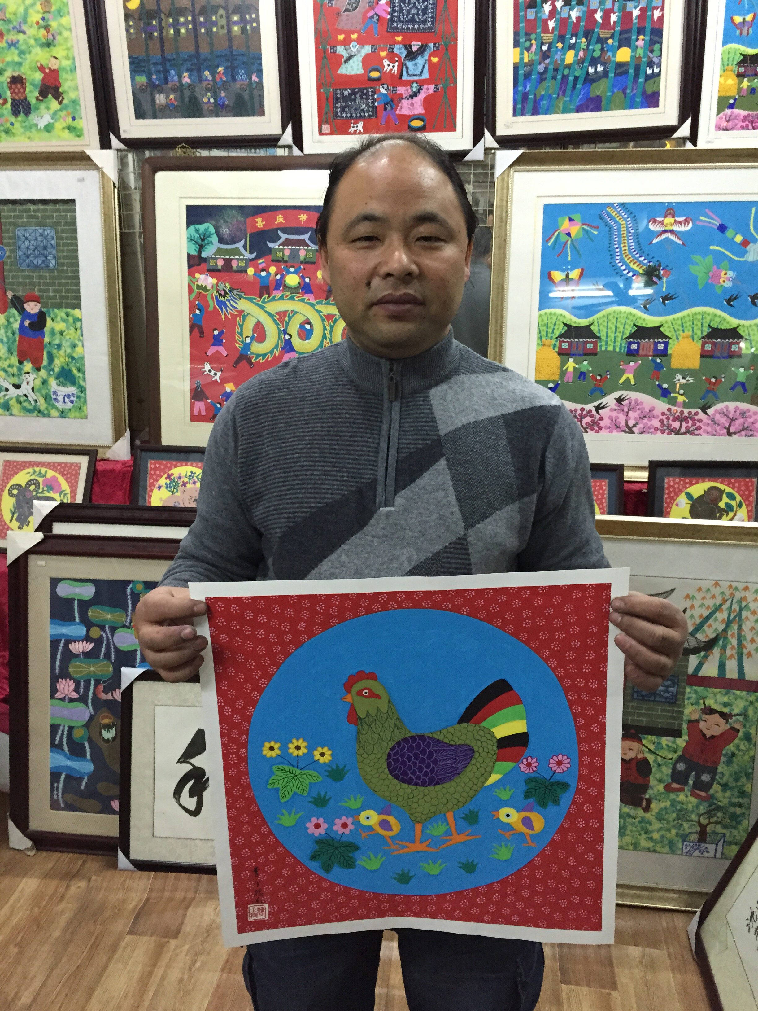 Работа 1989 года «куриная музыка» была выбрана в Гонконг.&Ldquo; Shanghai Folk Art выставка”.