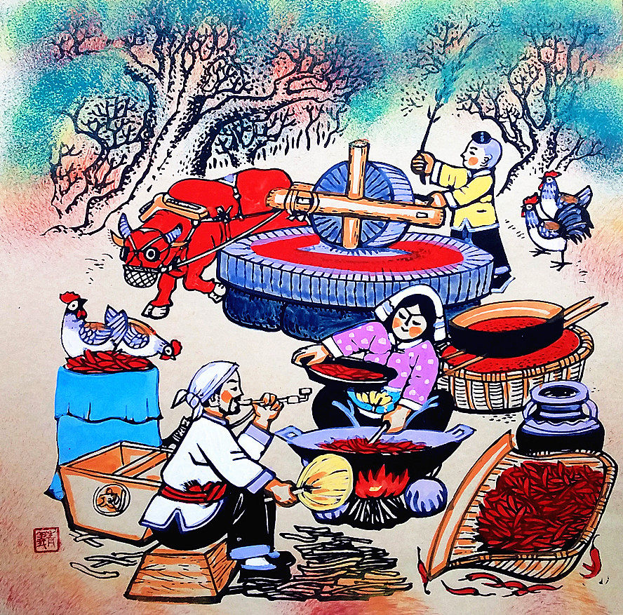 Mulfon Rural Mulpy Pepper Hotel Farmhouse Farmhouse украшение Shaanxi Huxian Farmers Painting Размер 25x25см