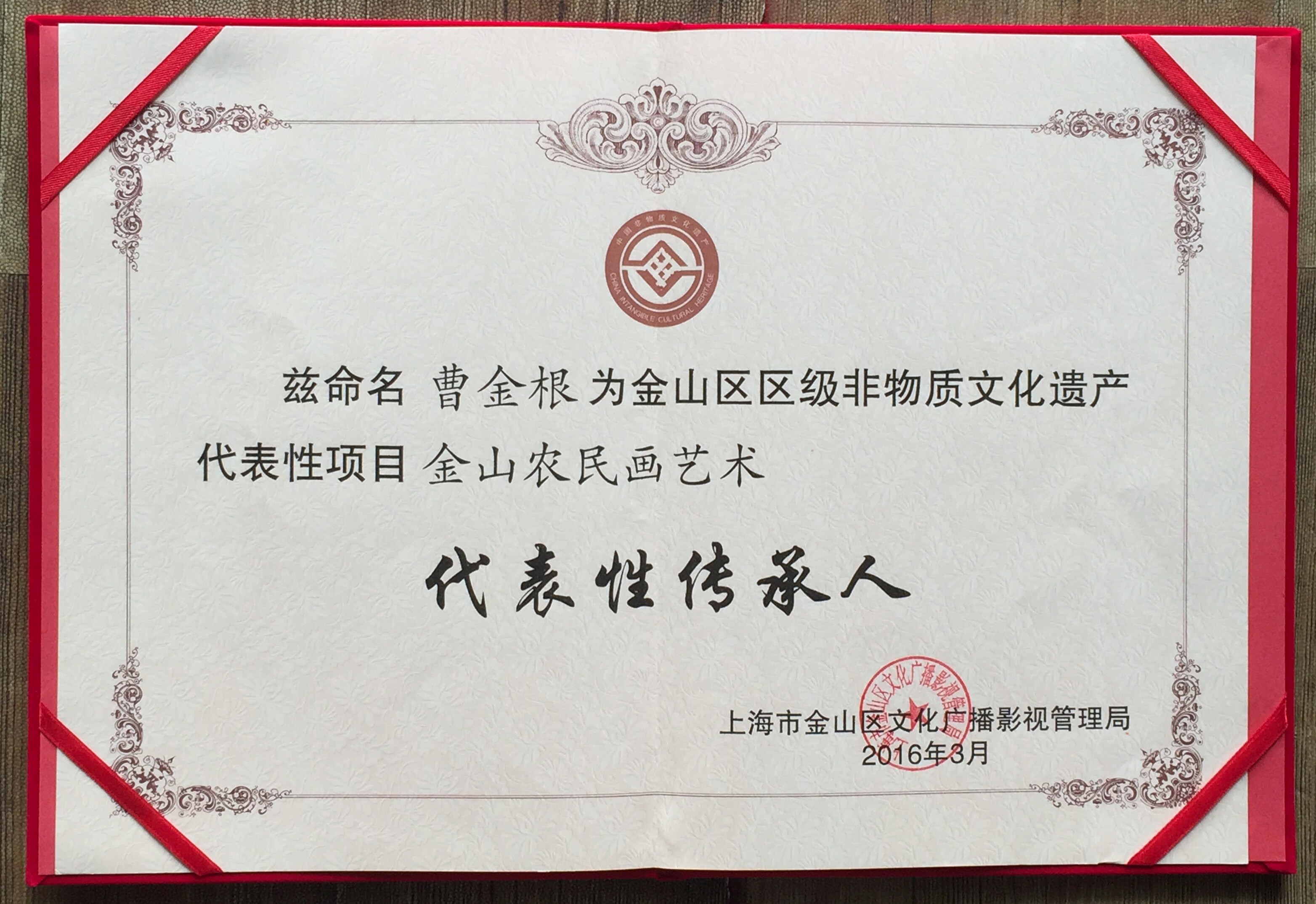 Цао Цзинен был оценен как первая партия нематериального представителя культурного наследия наследников района Джиншан.