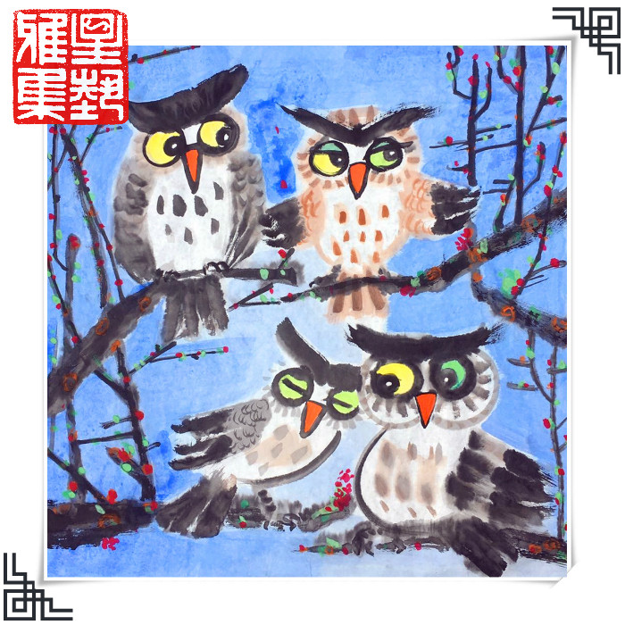 [Синьи Яджи] Оригинальная картина сестры Мун "Четыре сов"
