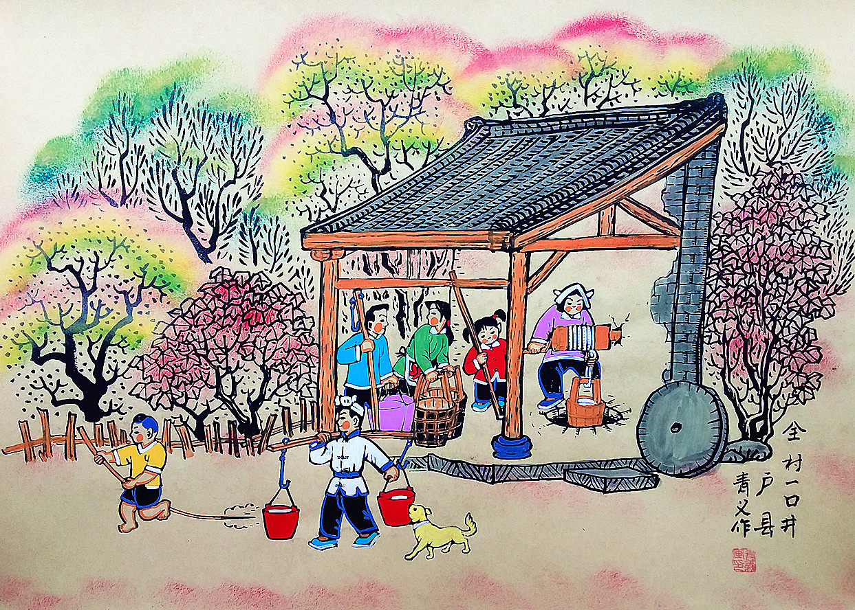 Вся деревня -это скважина в Цзиннонге, цивилизация водного фермерского хозяйства, Чжан Циньи, размер картины фермера 52x38 см.