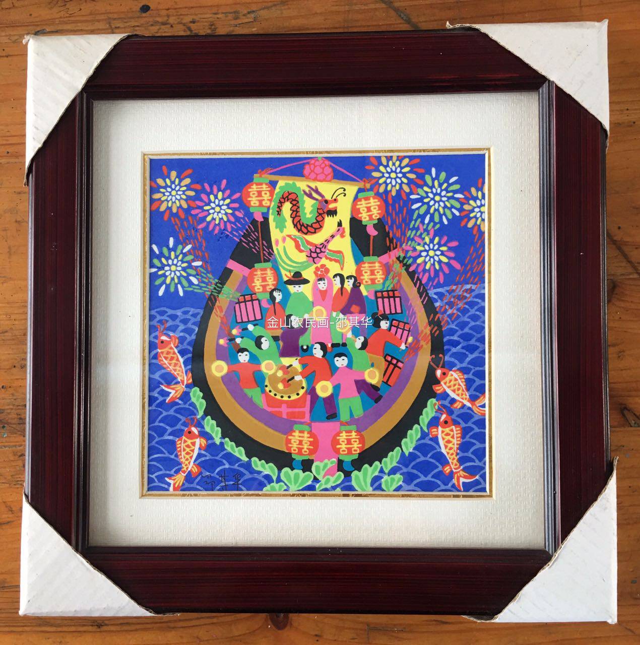 Живопись фермеров Джиншан "Счастливая лодка" с рамой, рисовать ядро 15cmx15cm Shao Qihua Оригинальные произведения