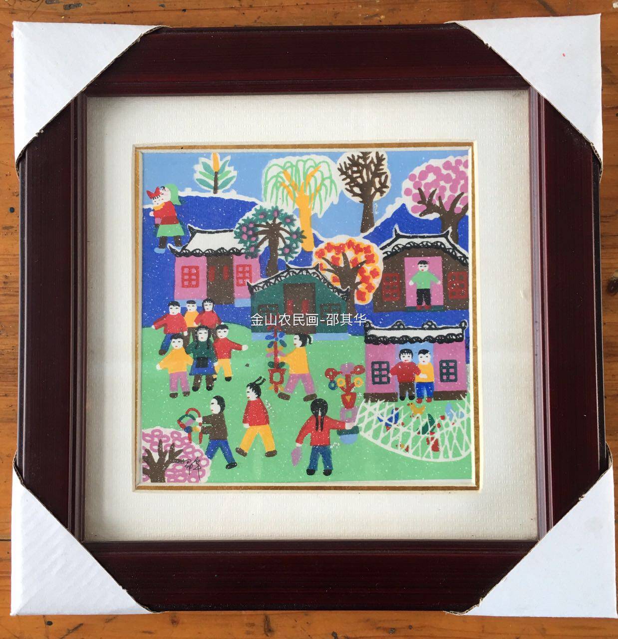 Живопись фермеров Джиншан "Снежная игра" с рамой, рисовать ядро 15CMX15CM Shao Qihua's Original Works