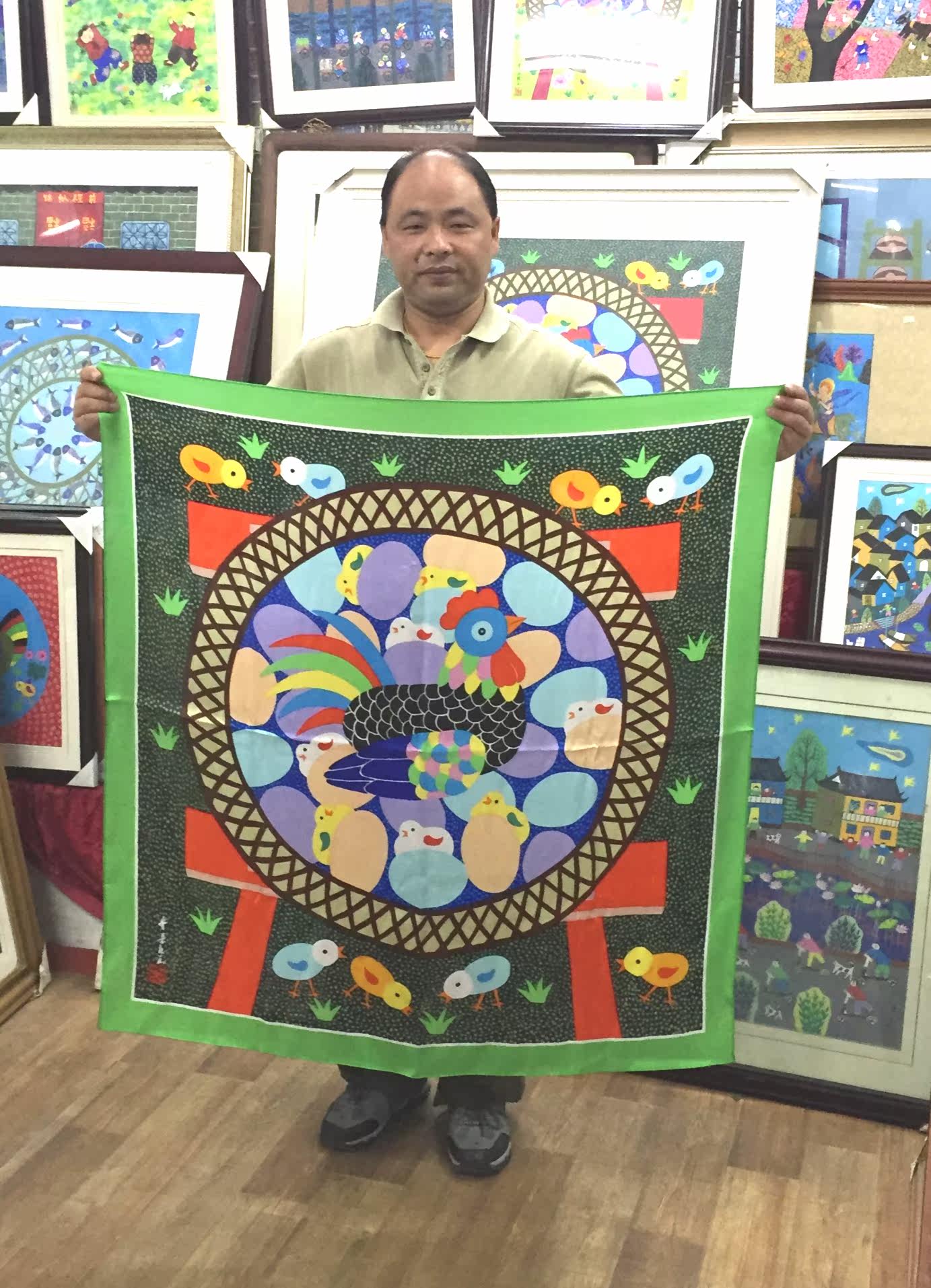 Работа 1989 года «куриная музыка» была выбрана в Гонконг.&Ldquo; Shanghai Folk Art выставка”.