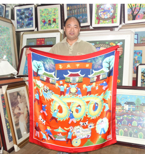 «Праздничный фестиваль» Фермерская живопись шелковой шарф 96-100 см. Авторские права были первоначально собраны
