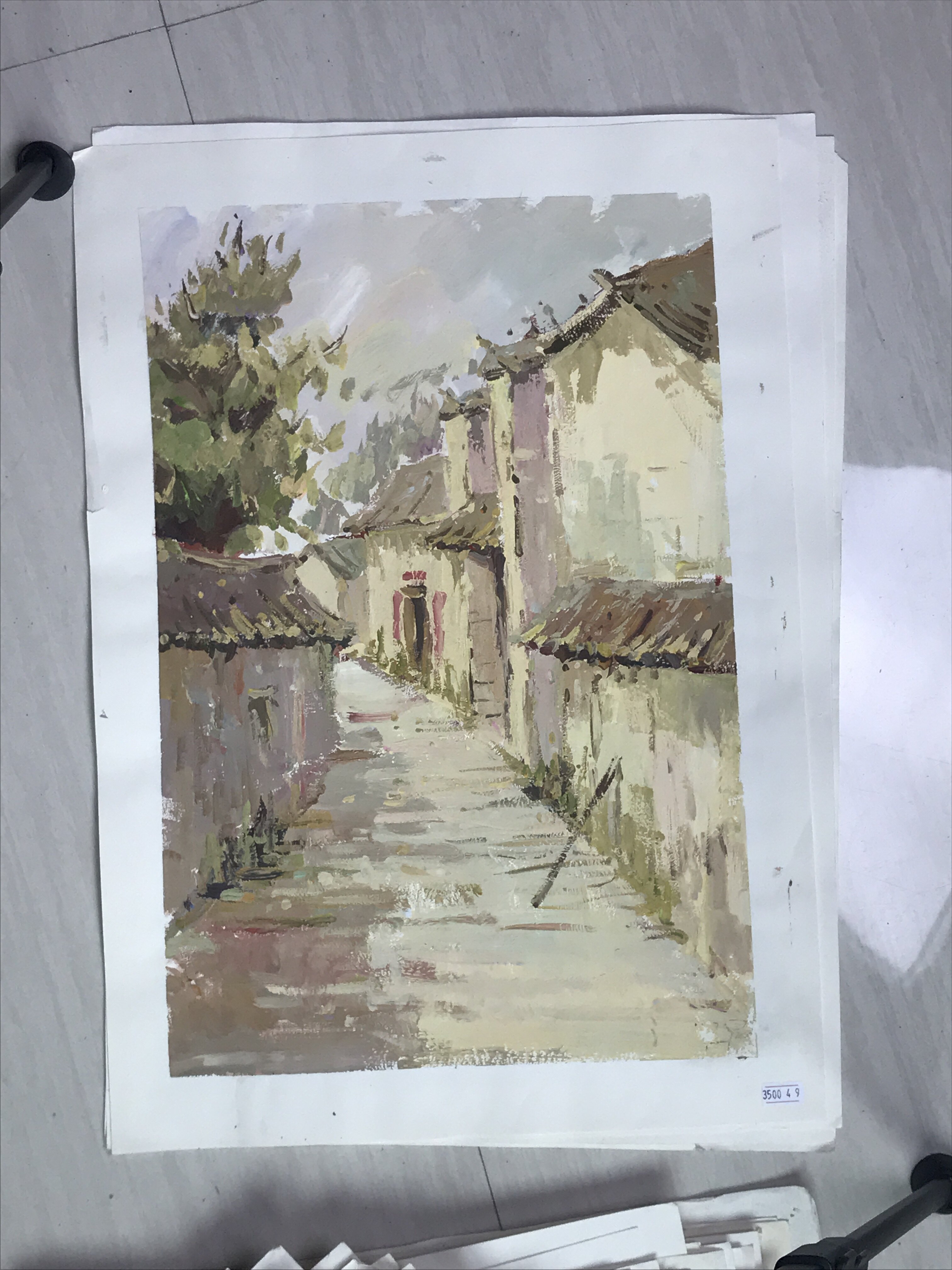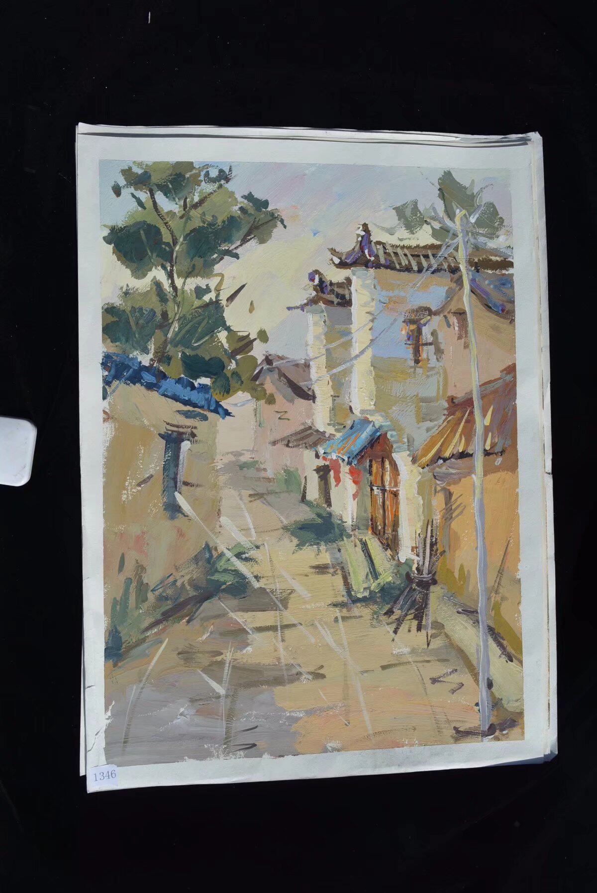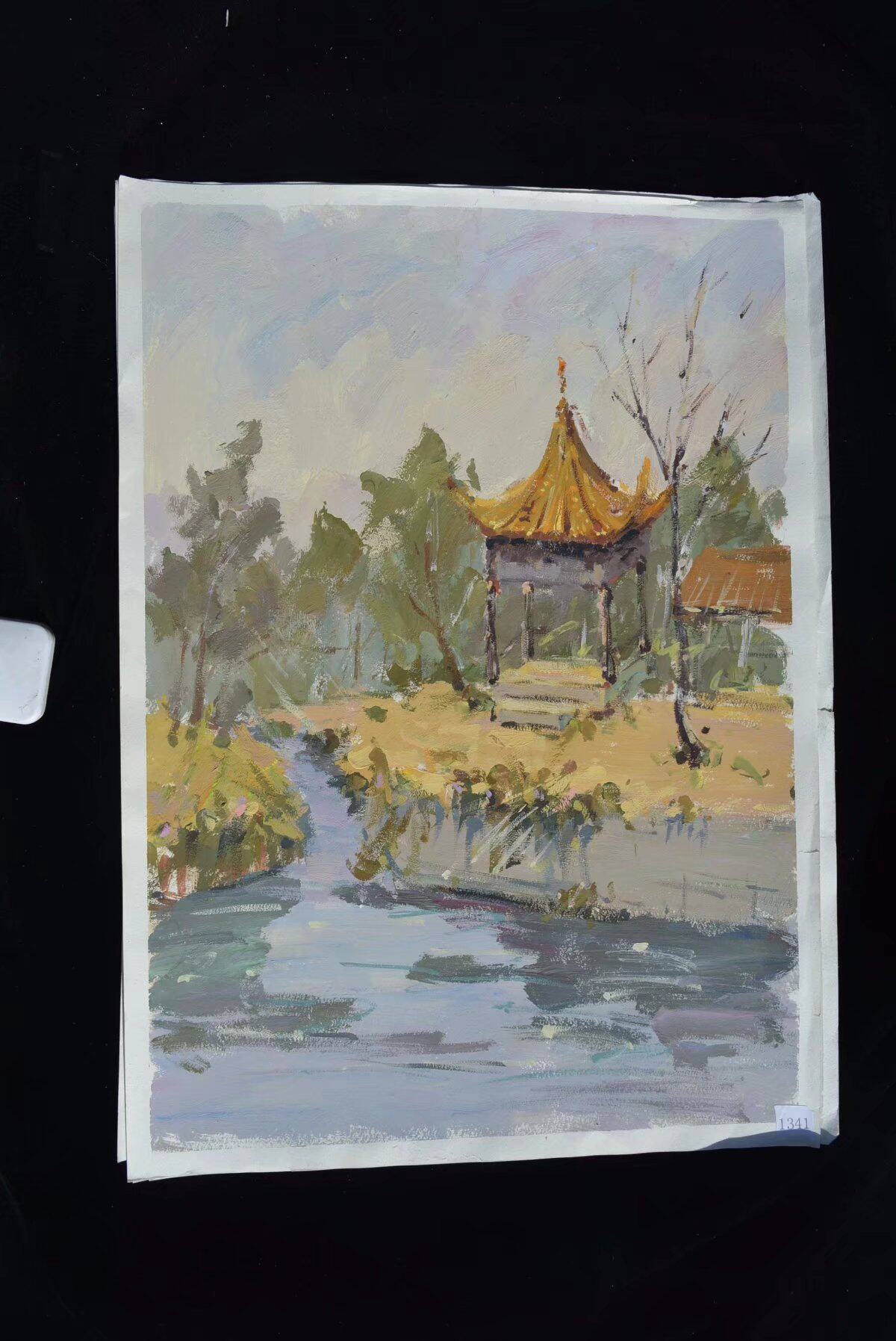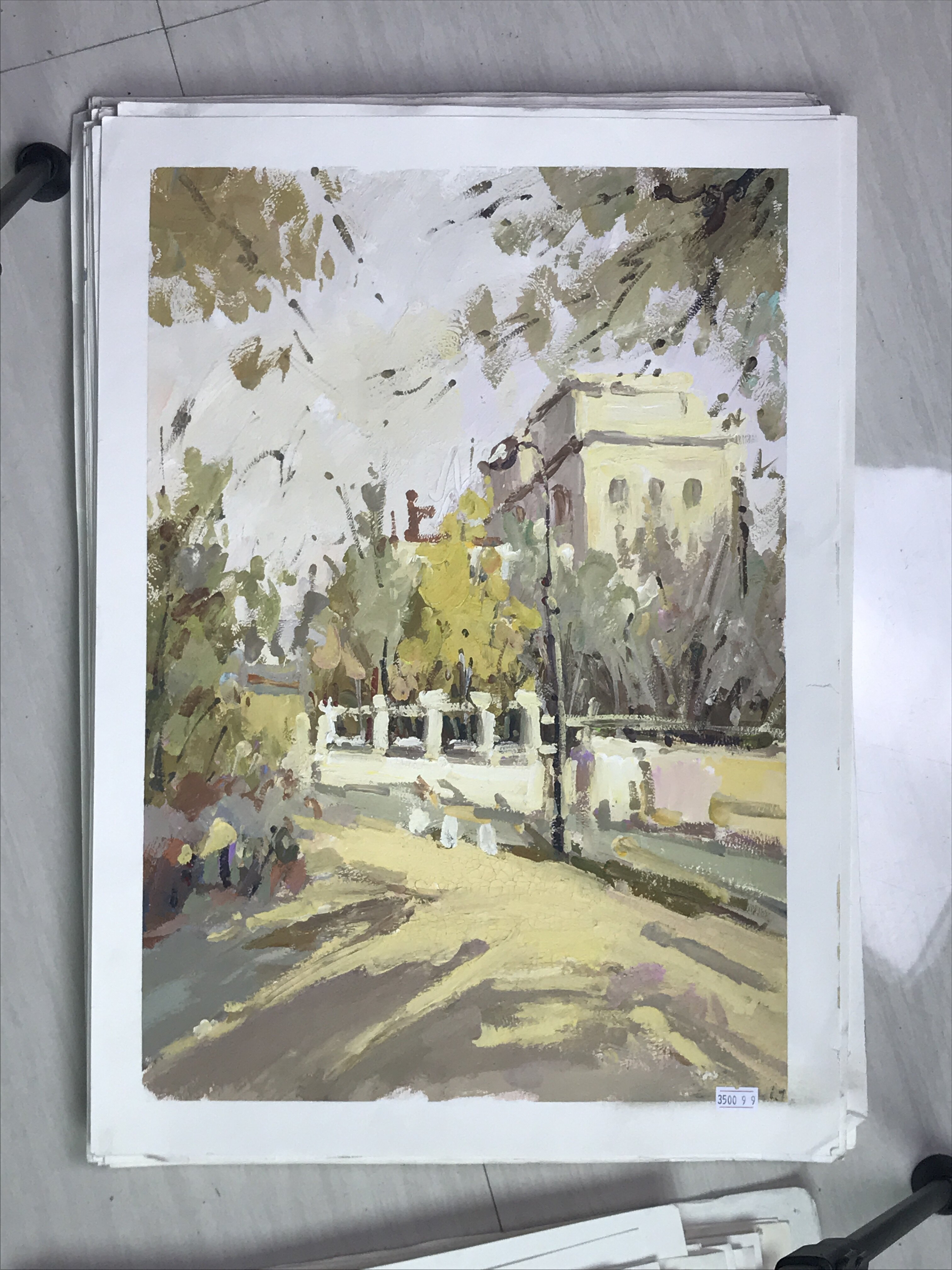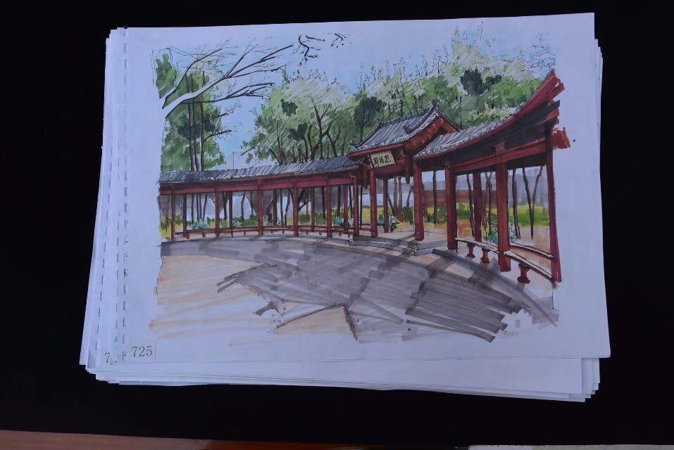Нарисуйте гуаче цветной перо и ландшафтное здание ландшафтное цветовое здание