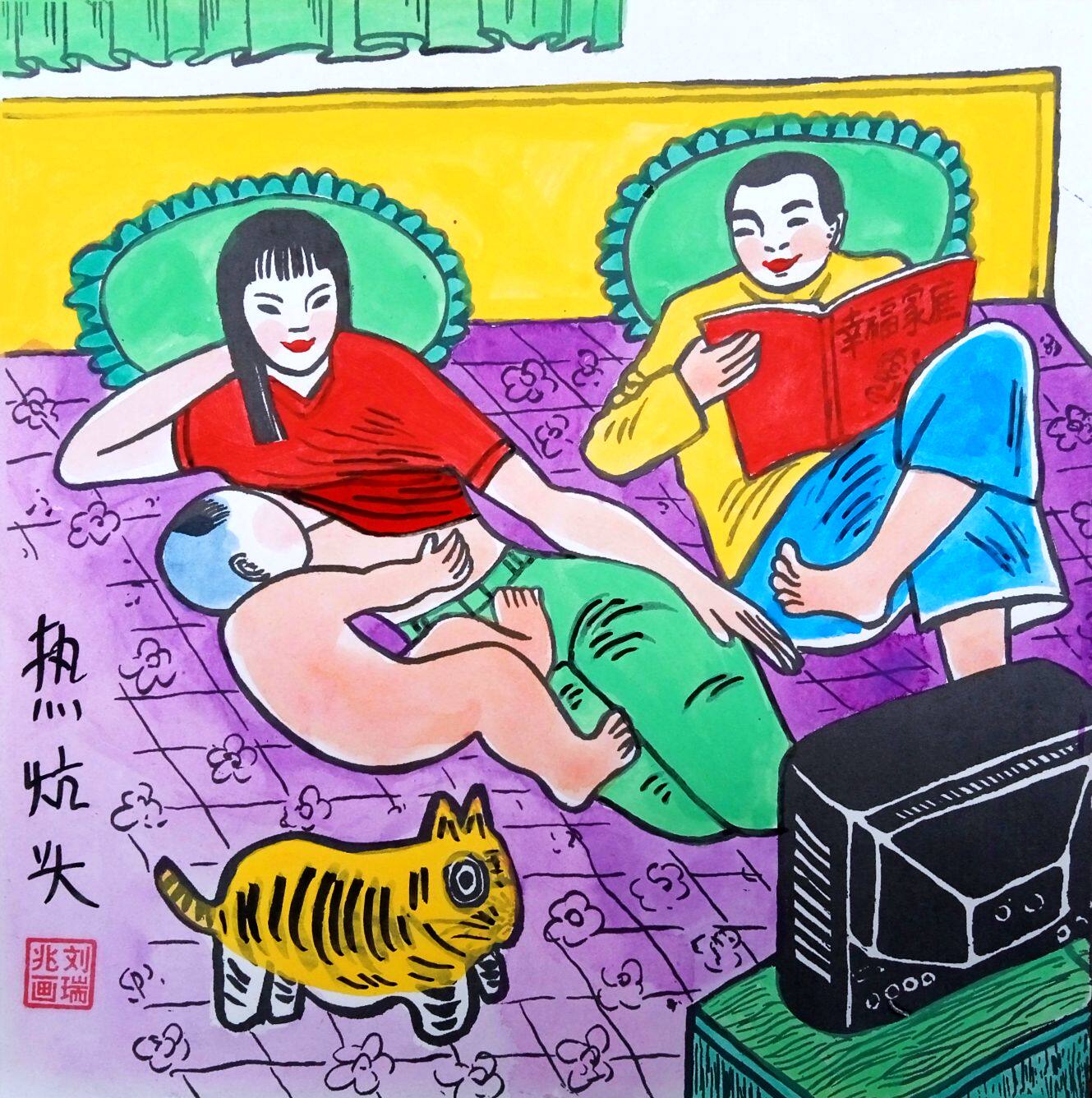 Жена постели, жена, ребенок, пара мужа и жены, Шэньси, Фермерский фермеры Шэньси Хусиан Размер 25x25см.