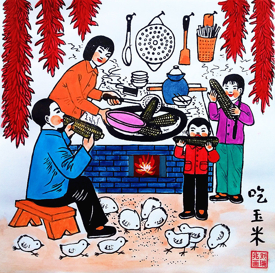 Ешь кукурузные фермеры, рисовая еда, Fuxiang, ресторан, ресторан ресторан, ферма, декорирование, фермеры, рисовать размер 25x25 см.