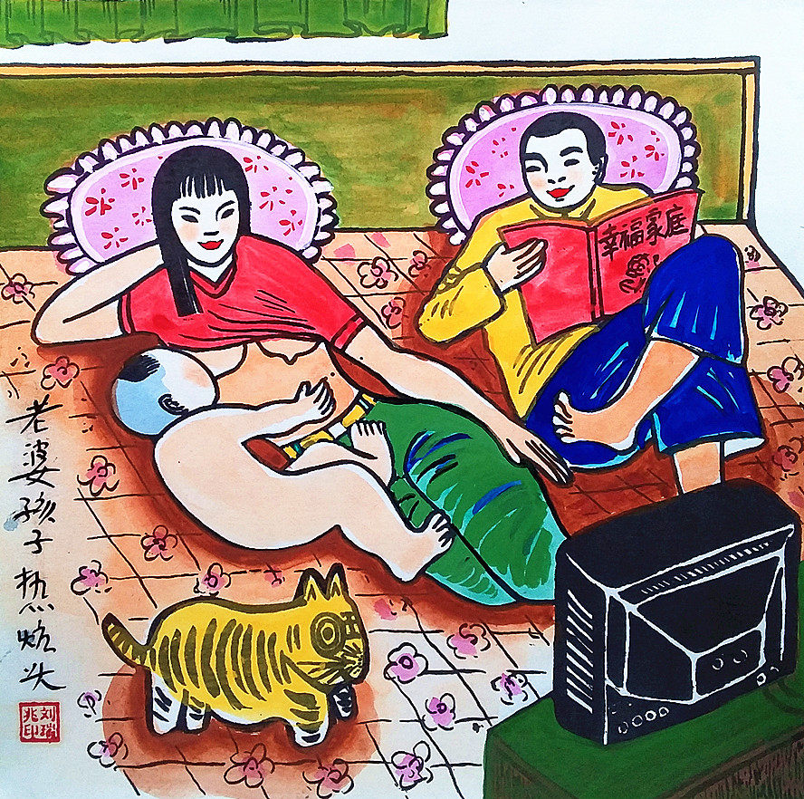 Жена кровати, пара, любимая счастливая семья, семья, Шэньси, Xi'an Farmers County Farmers Rawing Размер 25x25 см.
