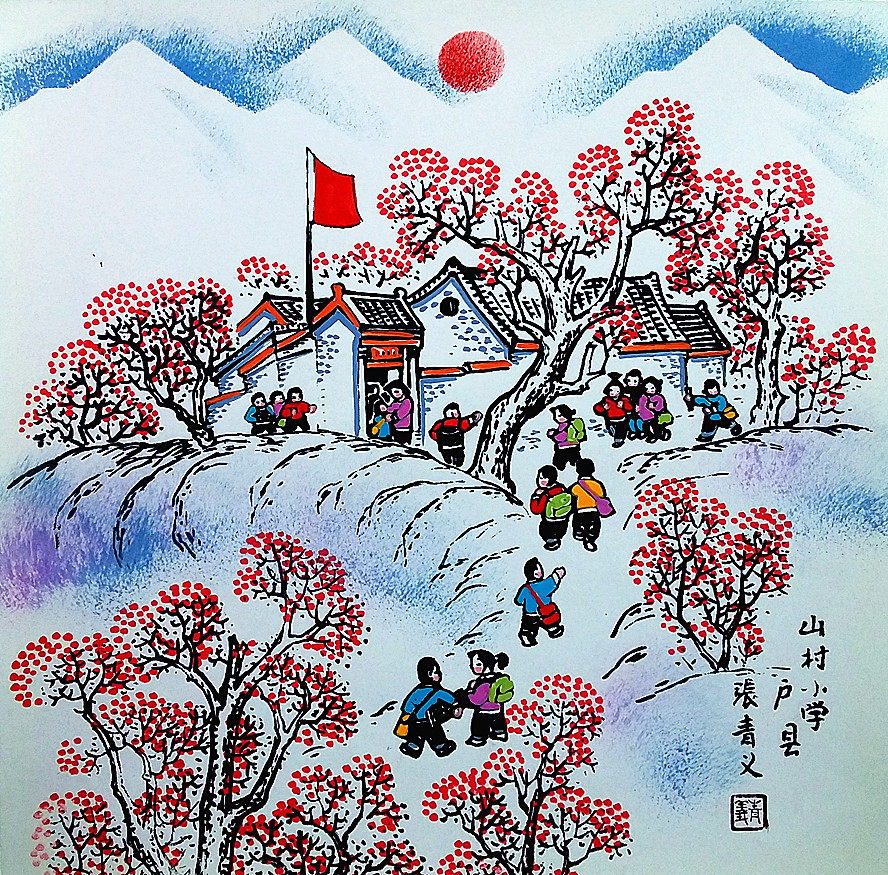 Шанкунская школа Отель дома покрасьте живопись Дети Сюэдзингху округа фермеры покраска размером 25x25 см.