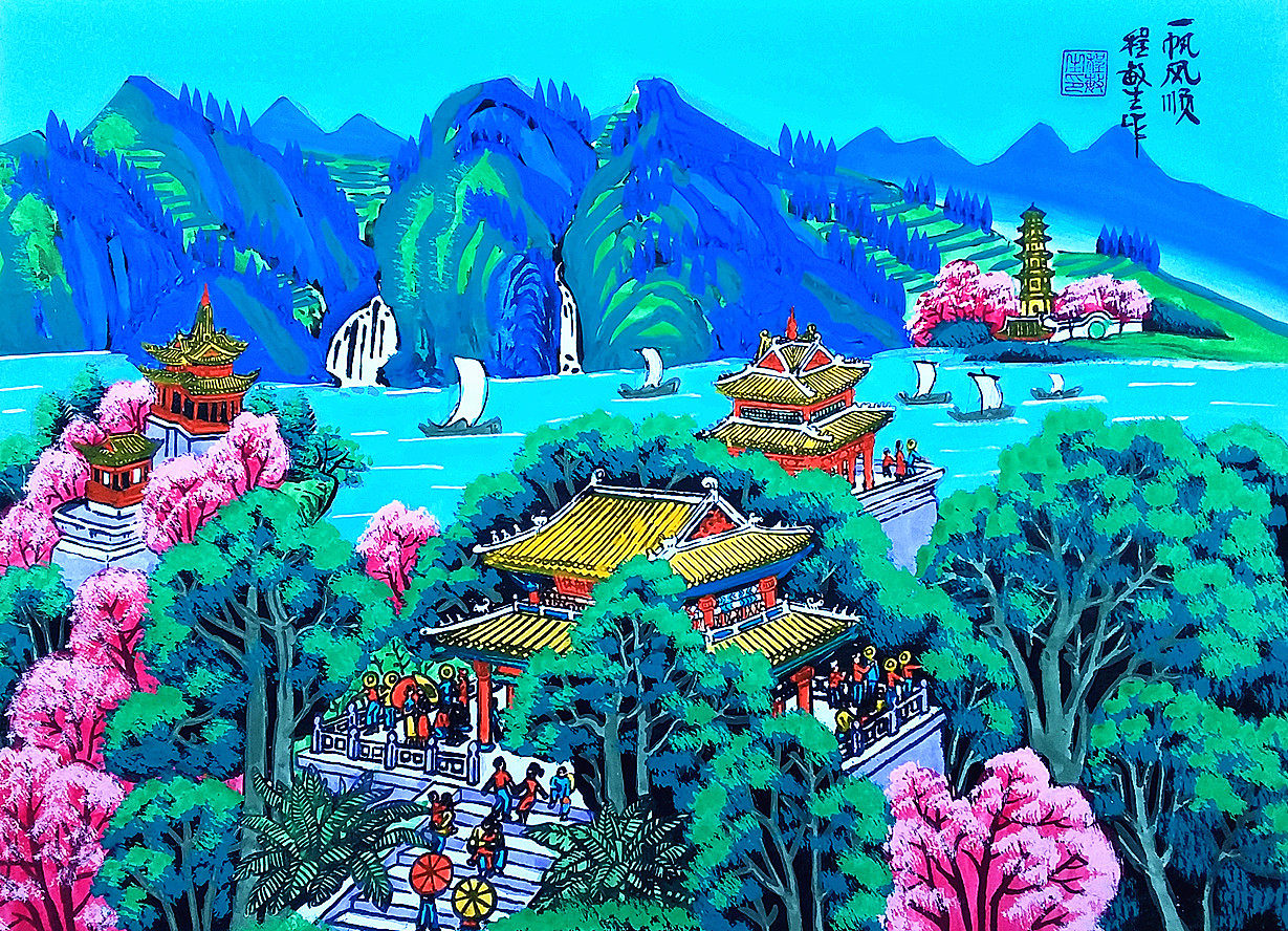 Парусная весенняя красавица, отель, отель, фермерский дом, графство Ченгли Минду, размер картины фермеров 52x38 см.
