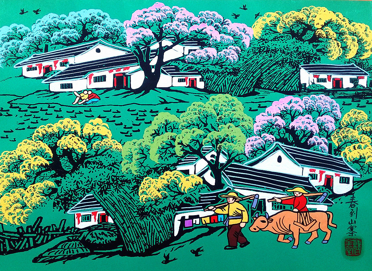 Весна до коттеджного сельского исходящего сельского дома Niu Niu Cao Quantang Xi'an Huxian Farmers Размер 52x38см