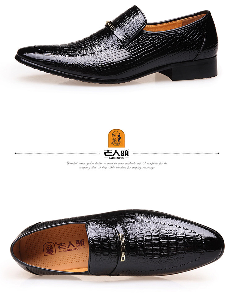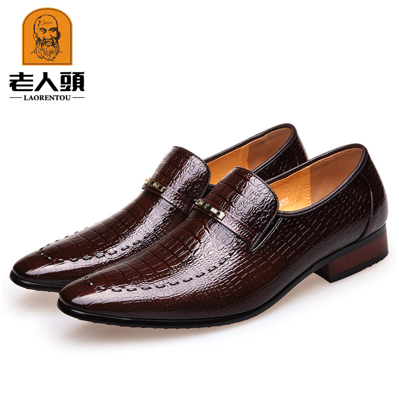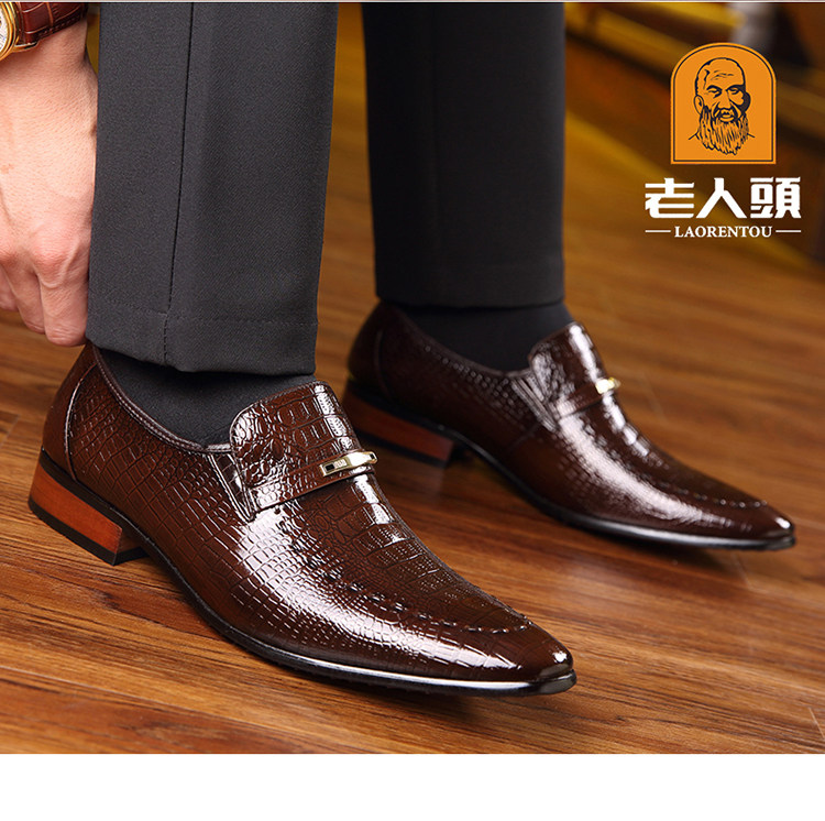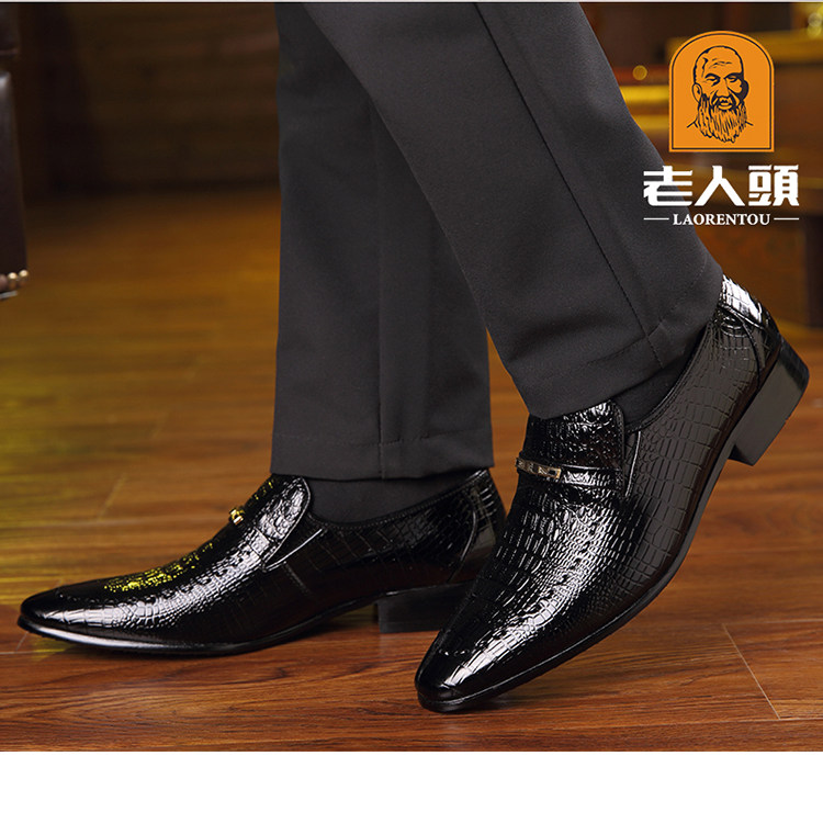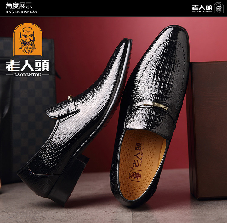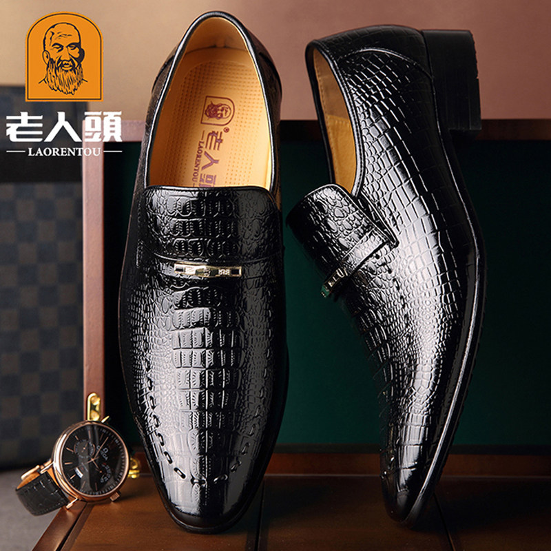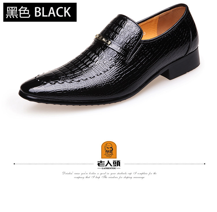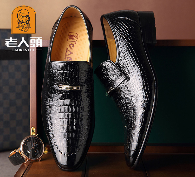 老人头 Обувь для кожаной обуви, черный пиджак классического кроя, свадебные туфли с заостренным носом, крокодиловый принт, из натуральной кожи