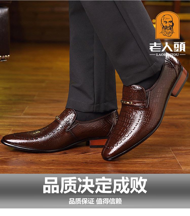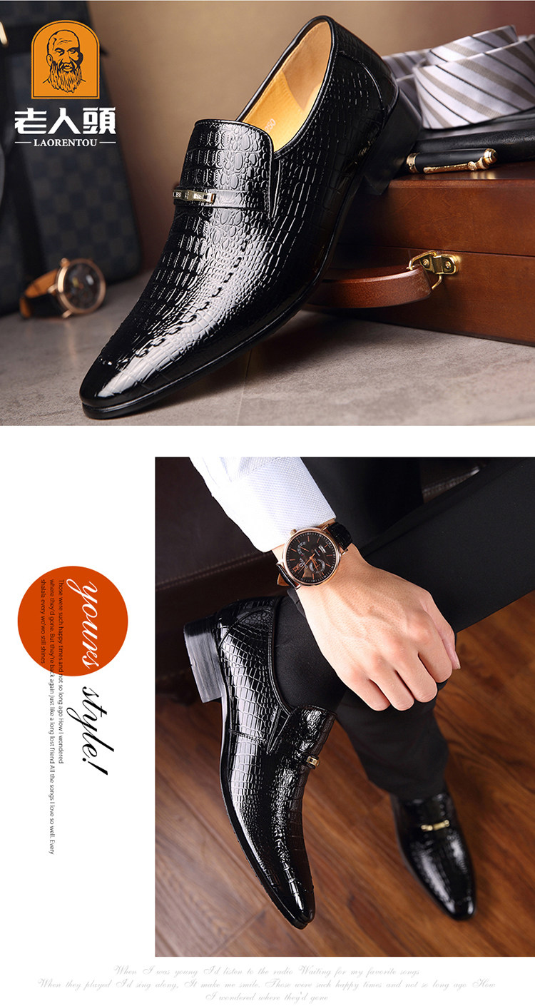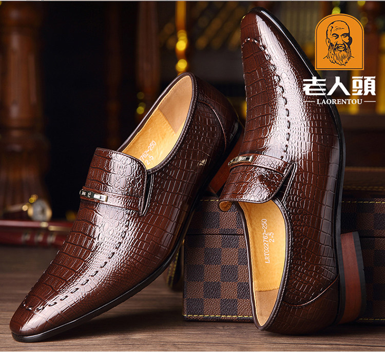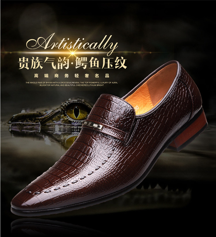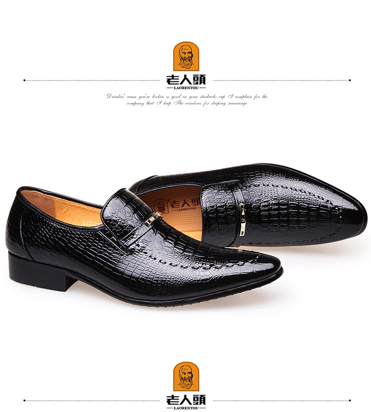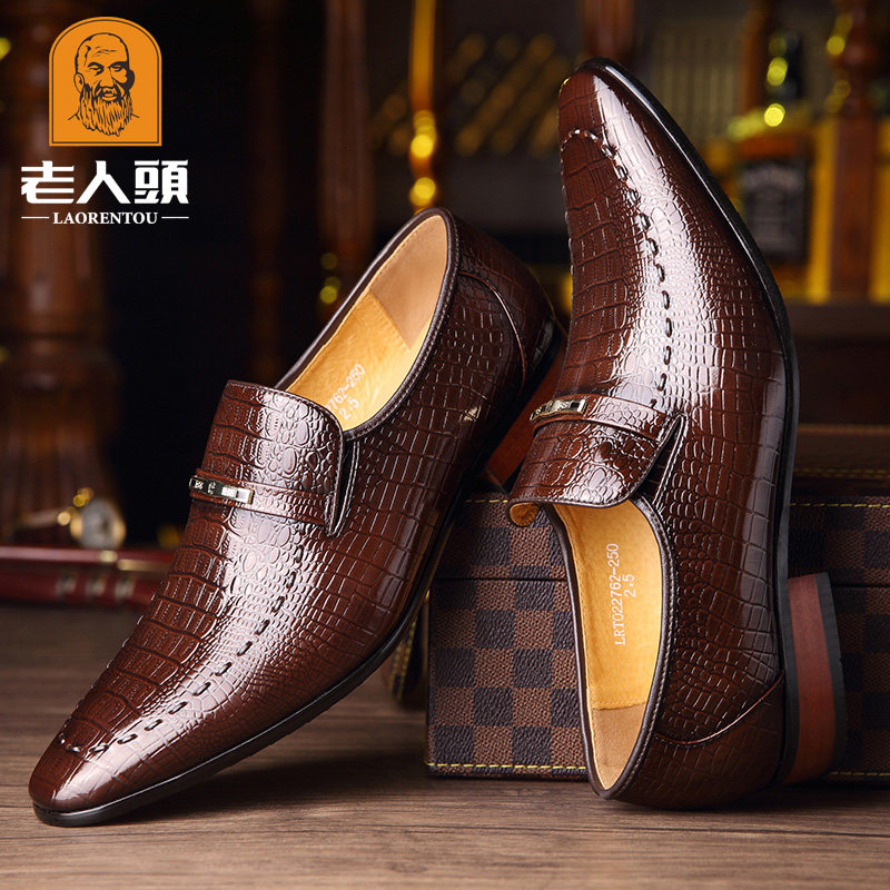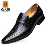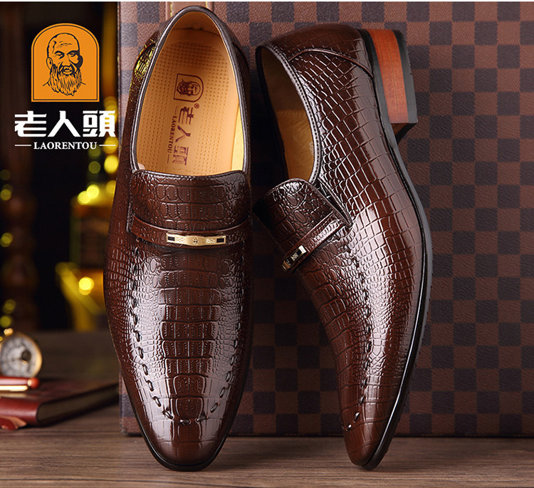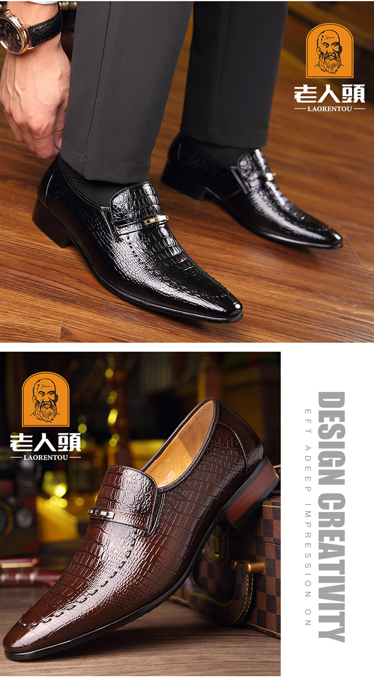 老人头 Обувь для кожаной обуви, черный пиджак классического кроя, свадебные туфли с заостренным носом, крокодиловый принт, из натуральной кожи