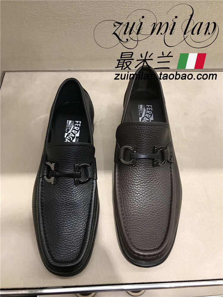 Итальянский счетчик искренний Ferragamo Мужская деловая повседневная кожаная обувь Классическая подкова пряжка