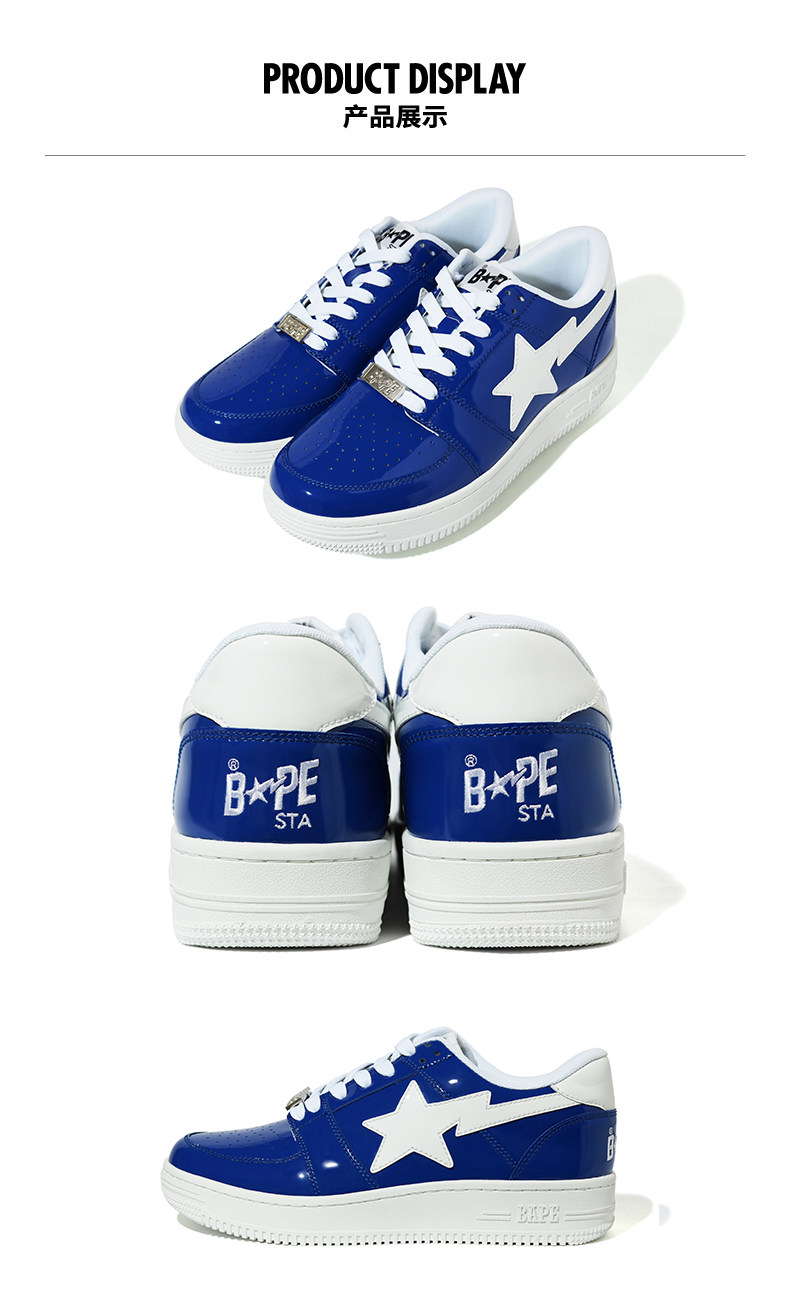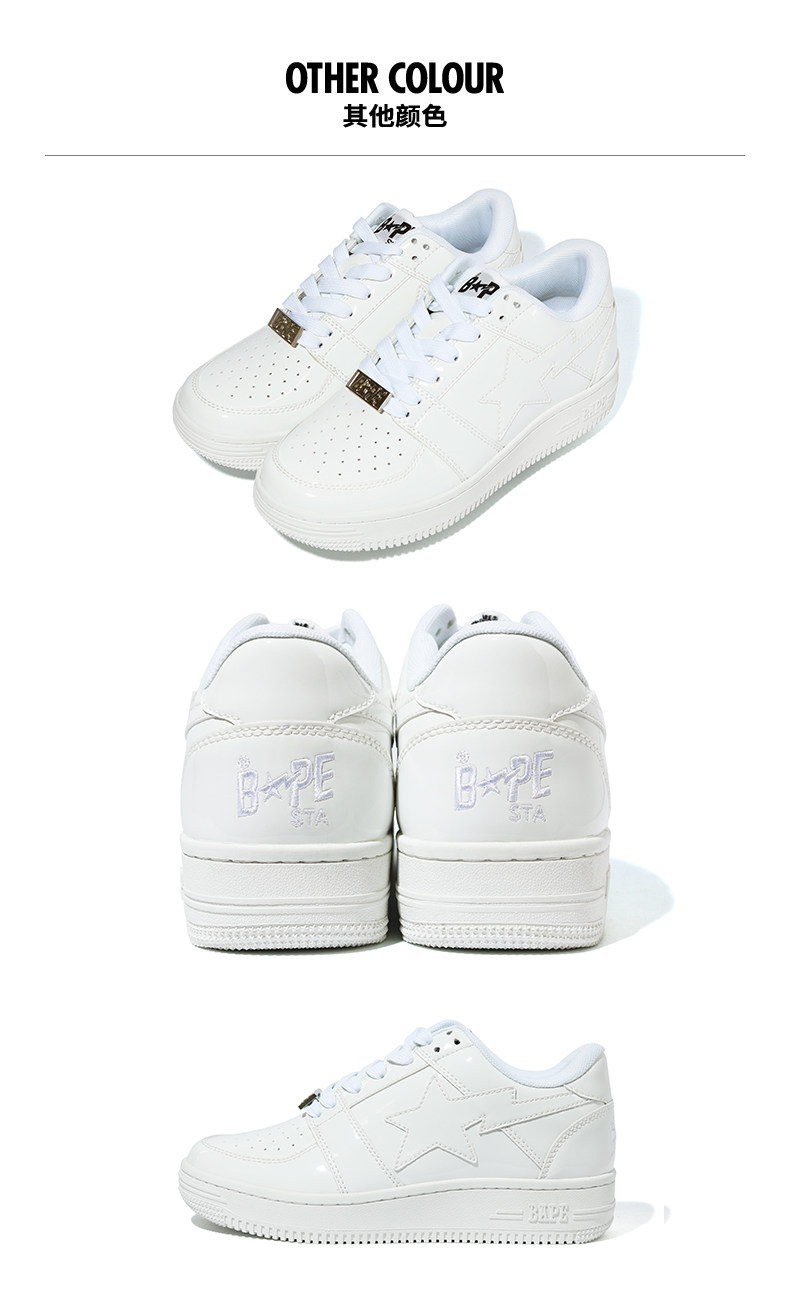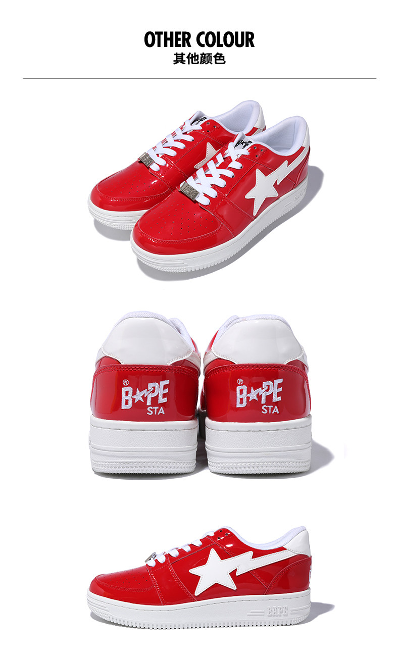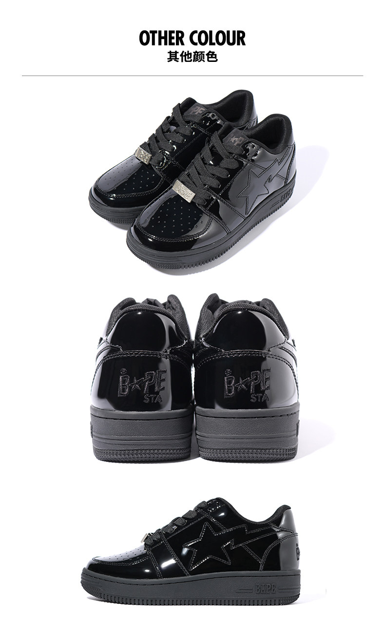 BAPE Мужская буква Star Pattern Solid Patent Leather Comtimity Trend Sheet Sheet Sheet Casual Shoes 391010E