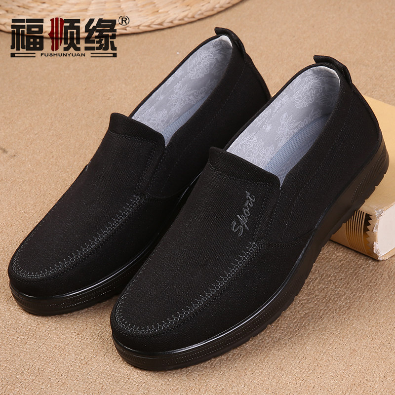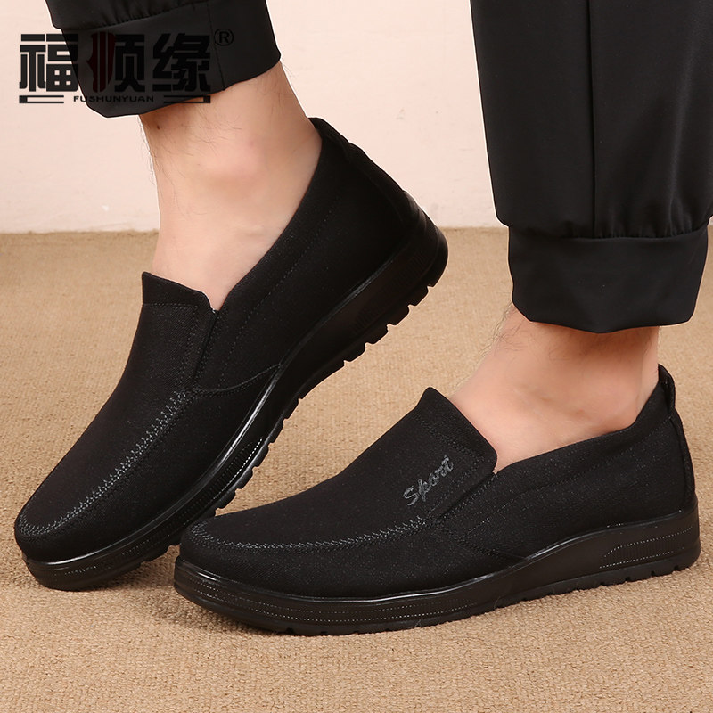 福顺缘 Осень Новая воздухопроницаемая мужская ткань обувь одна педаль свободная мужская одиночная обувь для работы бизнеса повседневная сплошная мужская обувь