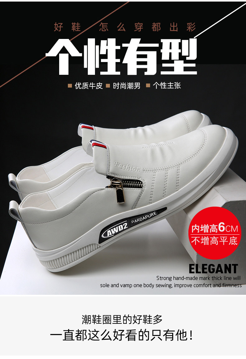 Высокая невидимая спортивная обувь для отдыха, трендовые высокие туфли для кожаной обуви, 6см, из натуральной кожи, 8см