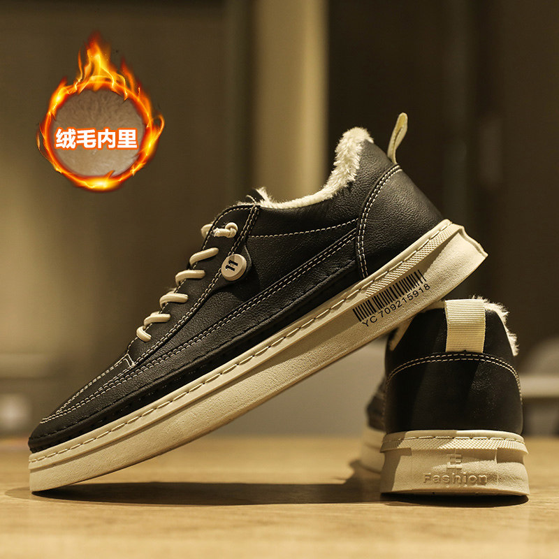 Зимняя обувь, нескользящие черные универсальные кроссовки для отдыха для кожаной обуви, флисовые удерживающие тепло туфли