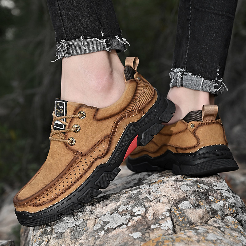 Мужская обувь Huagang Camel, уличная повседневная обувь из натуральной кожи, походная обувь на толстой подошве, мужская рабочая обувь с круглым носком, дышащая мужская кожаная обувь