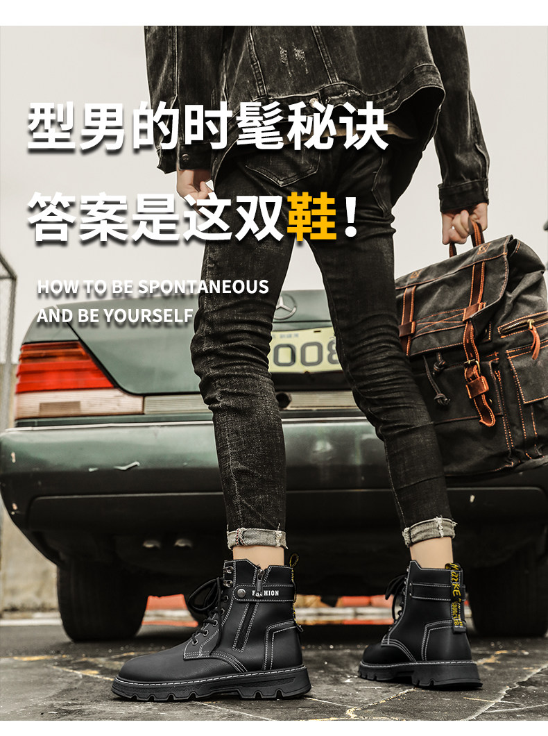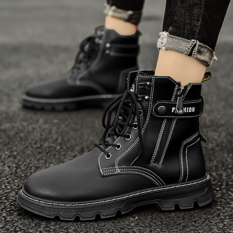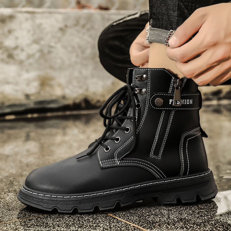 Martens, черные весенние высокие кроссовки для отдыха для кожаной обуви