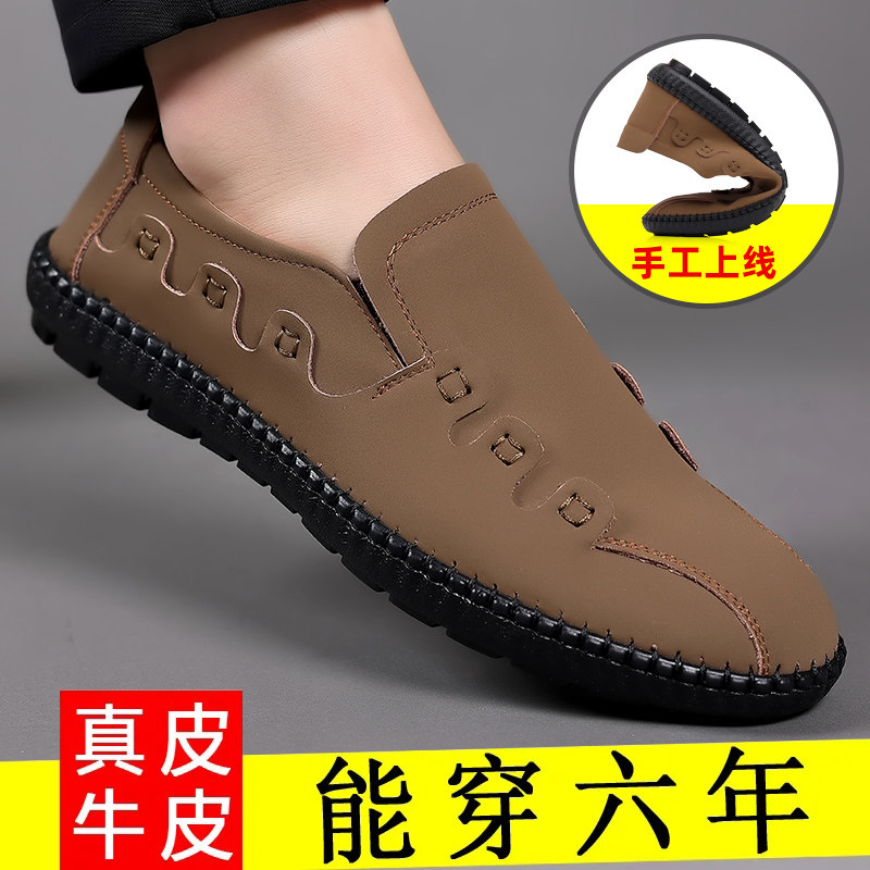 Туфли для отдыха для кожаной обуви, рабочие шнурки, обувь, мягкая подошва, из натуральной кожи