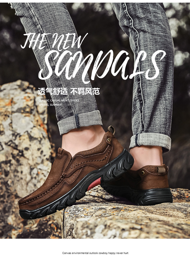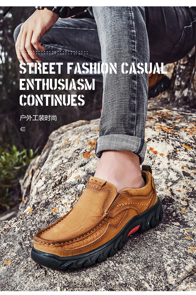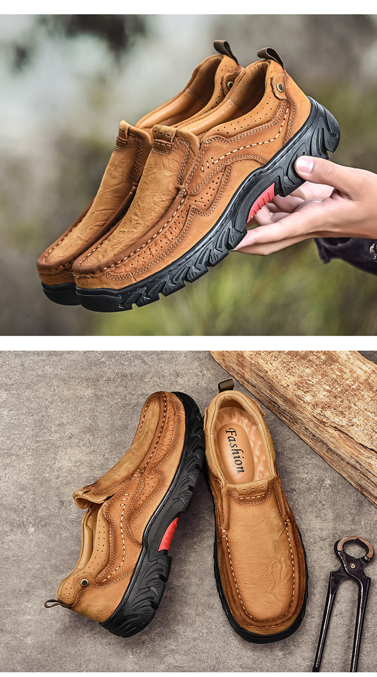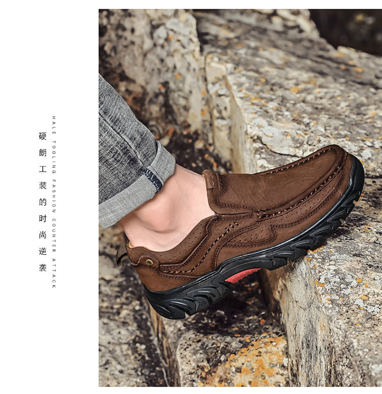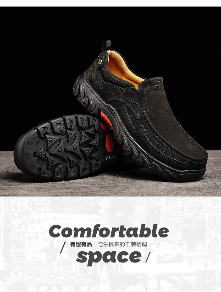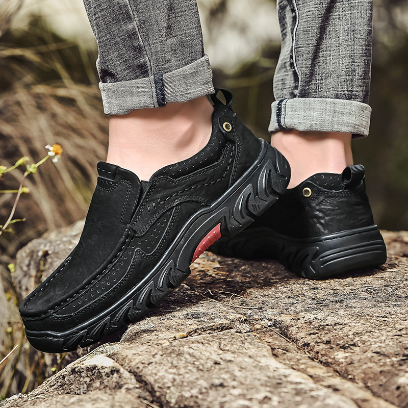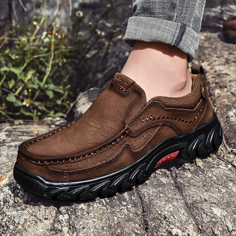 三赞 Мужская обувь, рабочая обувь с круглым носком на толстой подошве, мужская натуральная кожа, мужская уличная повседневная обувь, кожаные туфли для пап на мягкой подошве