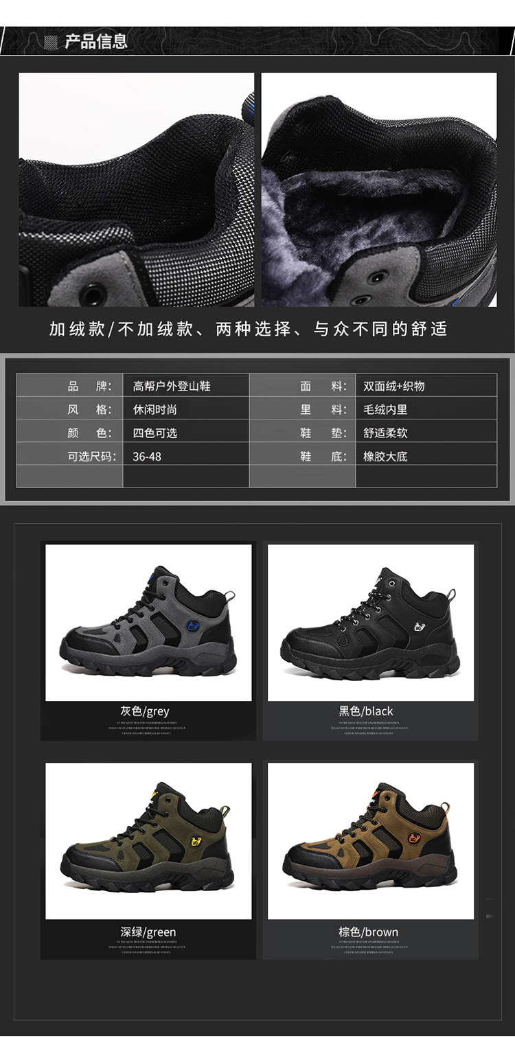 Нескользящая износостойкая обувь, альпинистские флисовые зимние туфли, большой размер