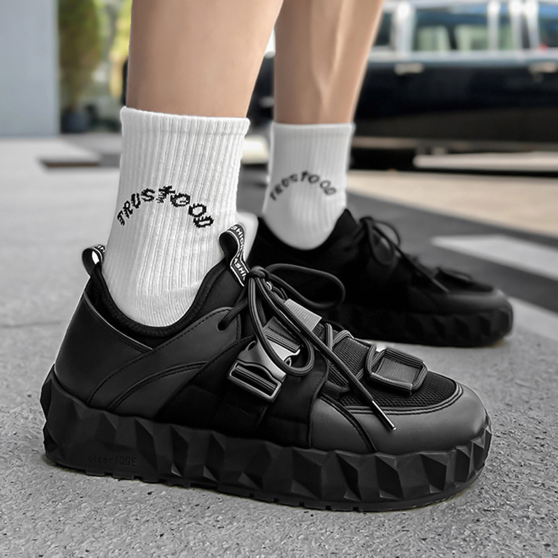 Демисезонная трендовая черная обувь для отдыха на платформе, для бега