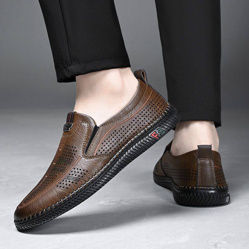 Кожаная летняя обувь для кожаной обуви, дышащие сандалии, туфли, из натуральной кожи, мягкая подошва