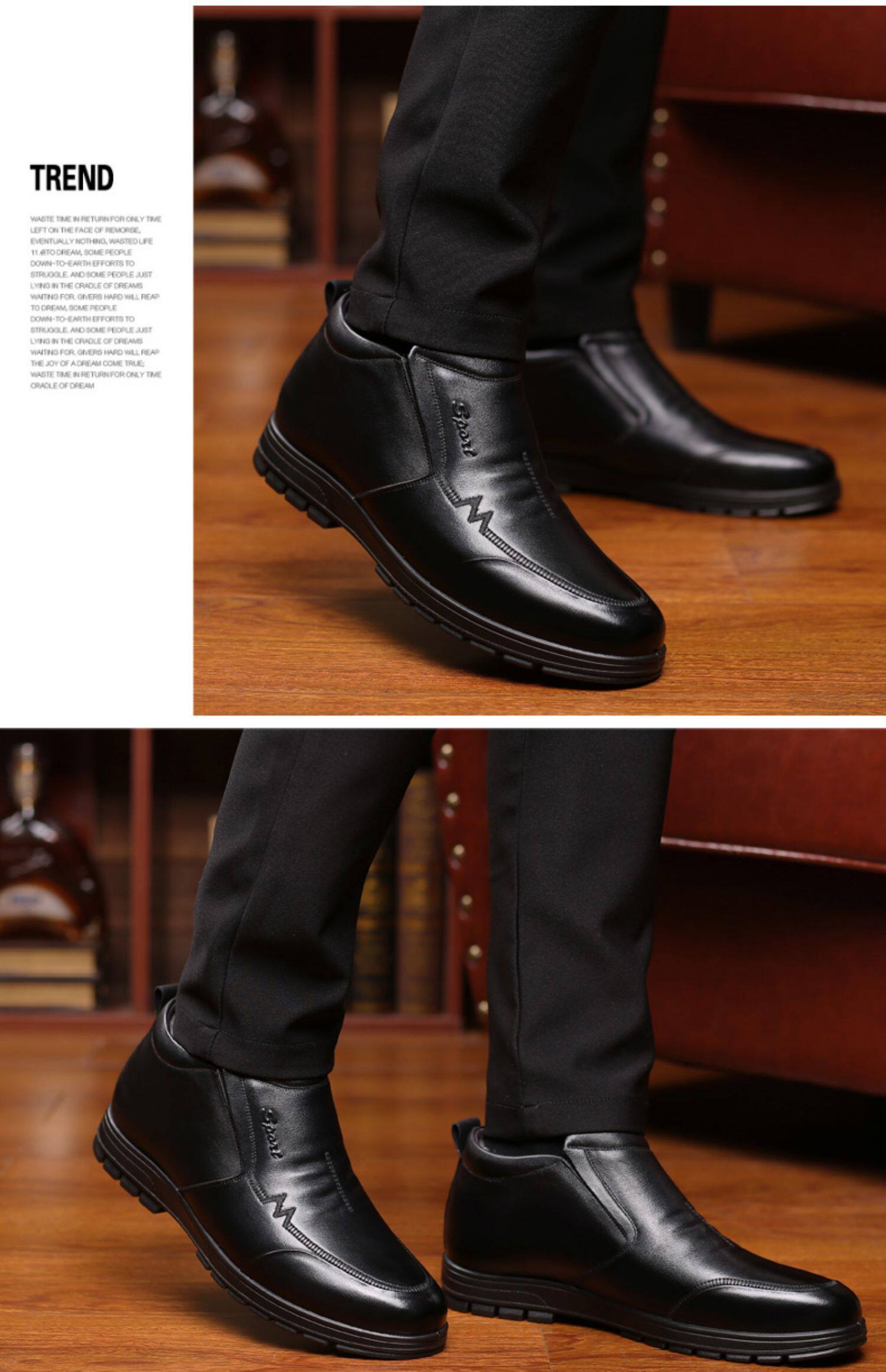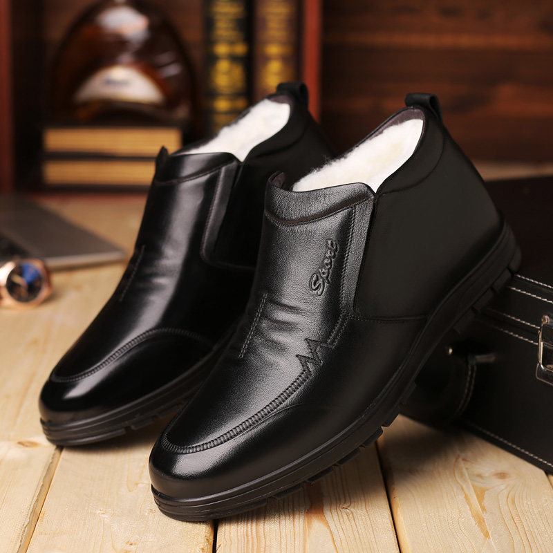 Мужские демисезонные туфли, высокая удерживающая тепло обувь для отдыха для кожаной обуви, из натуральной кожи, для среднего возраста