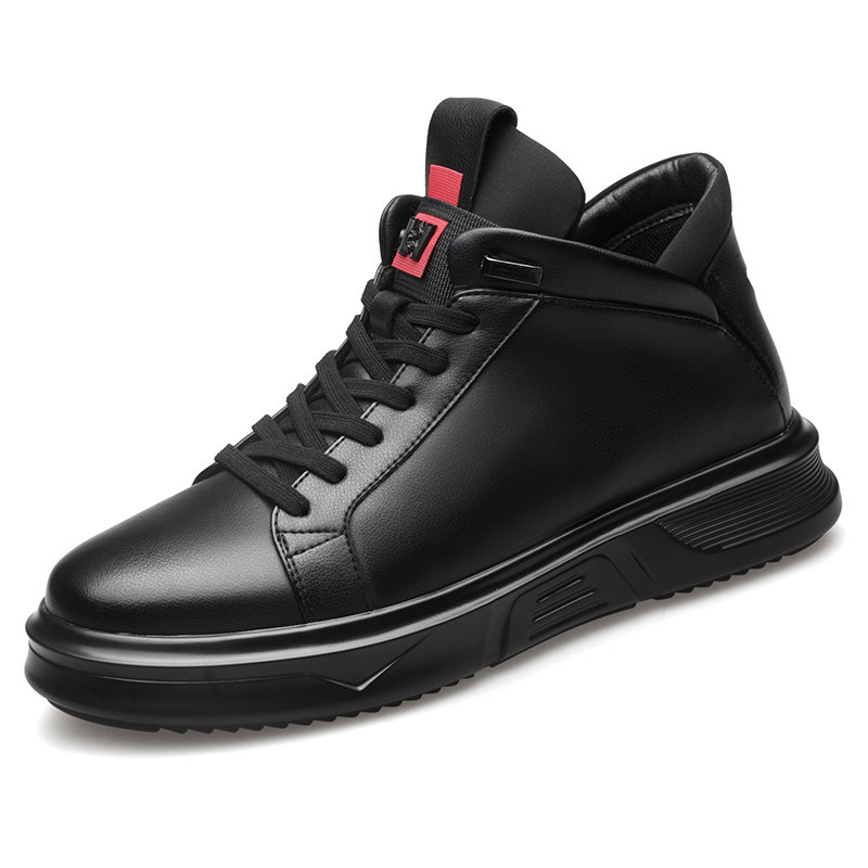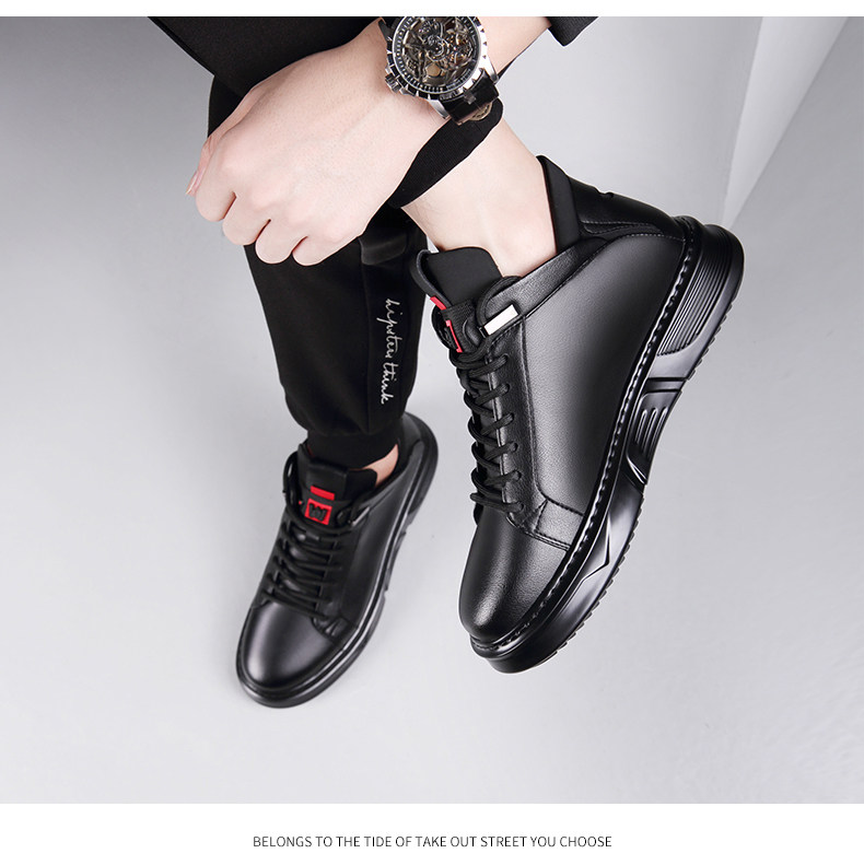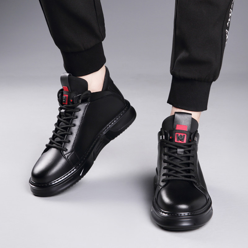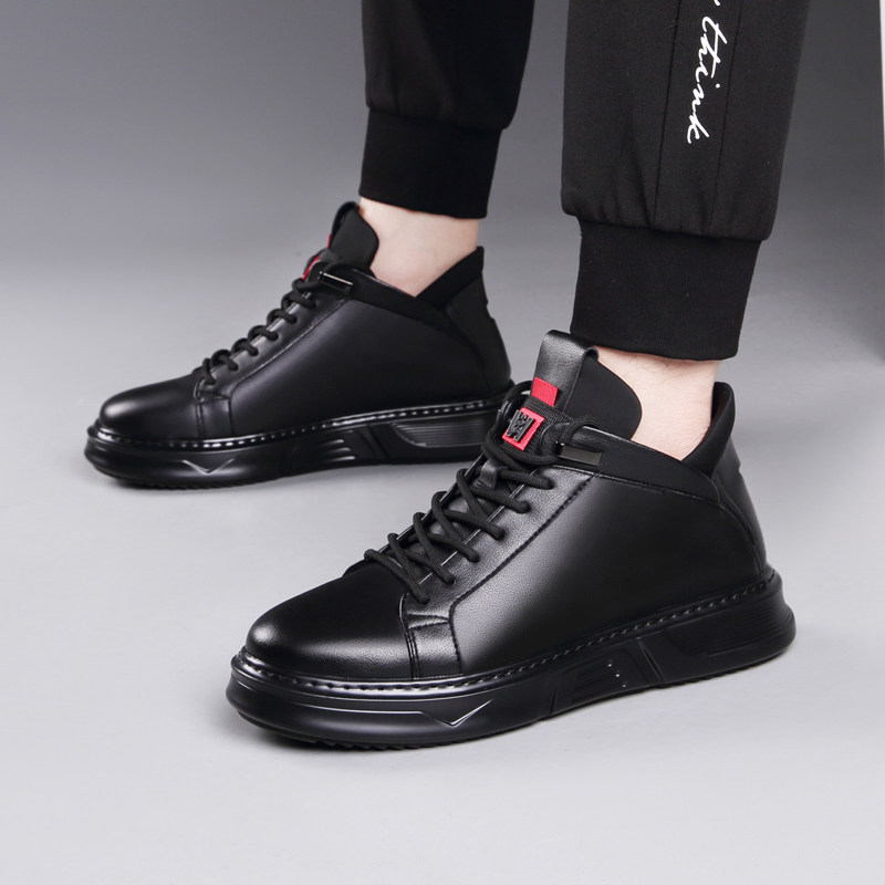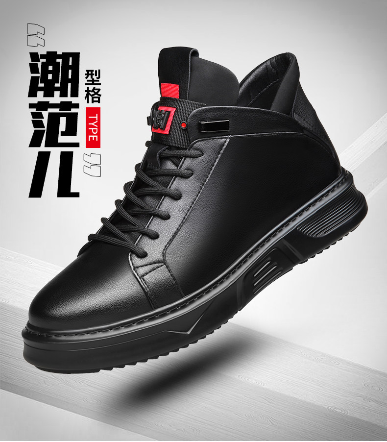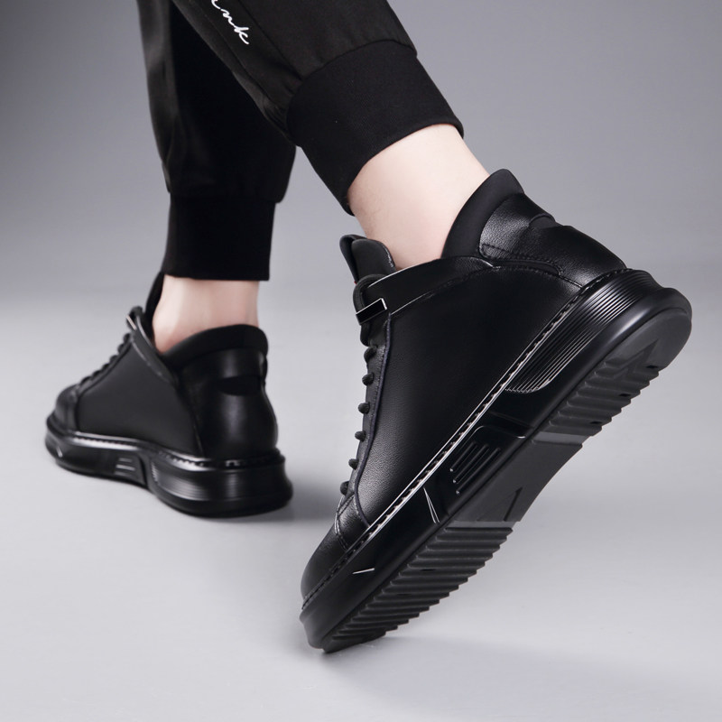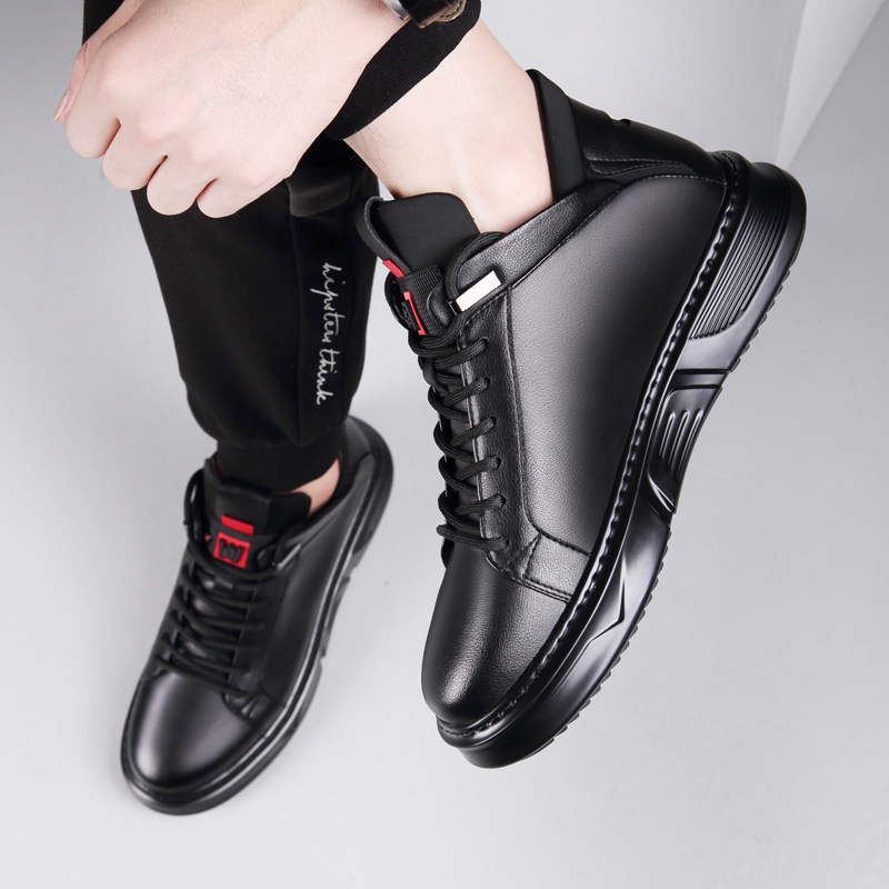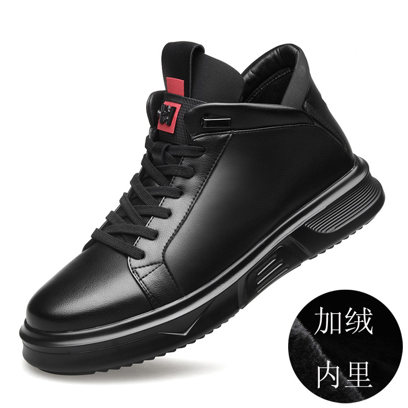 Осенне-зимние новые повседневные кожаные туфли для мужчин, натуральная кожа, универсальные мужские туфли с высоким берцем, а также бархатные теплые хлопковые туфли, модные кроссовки в корейском стиле.