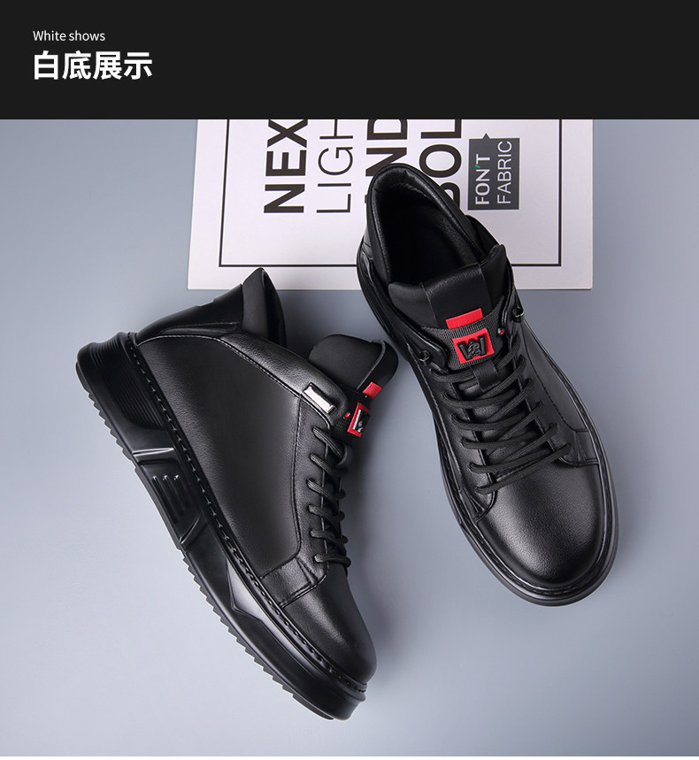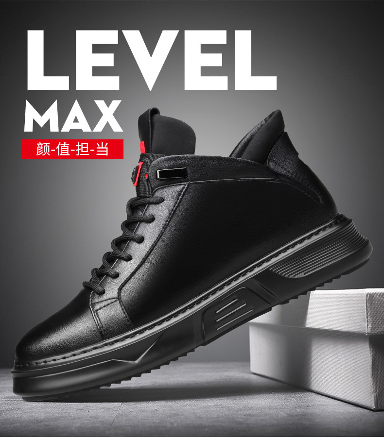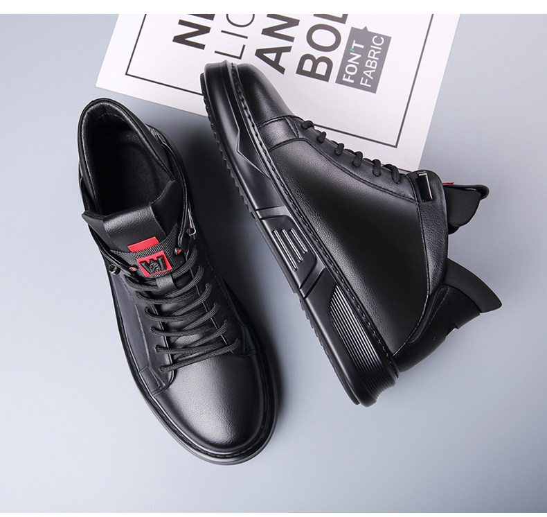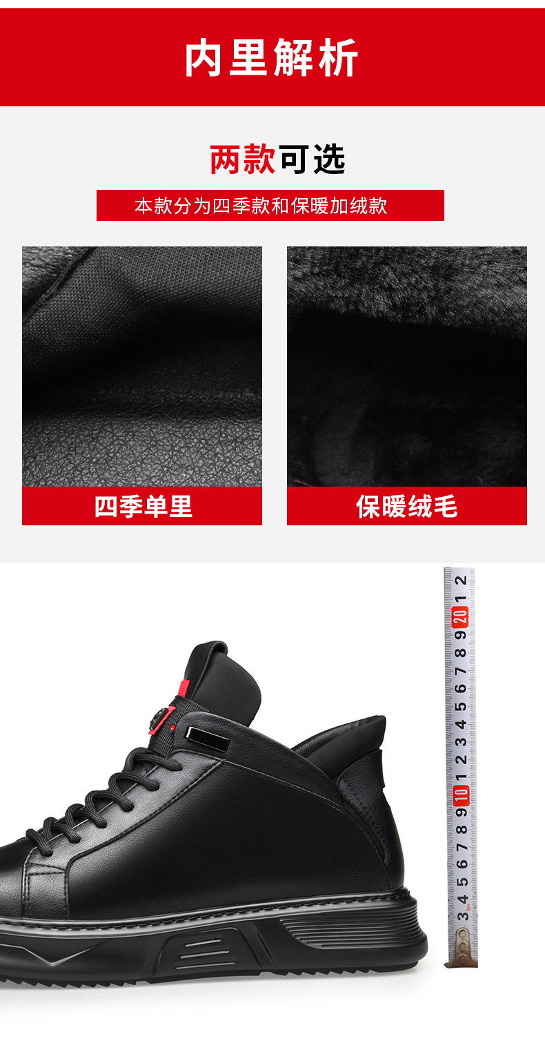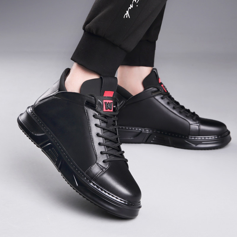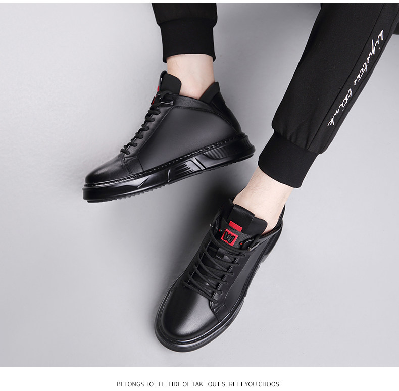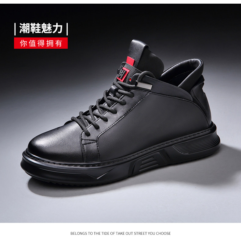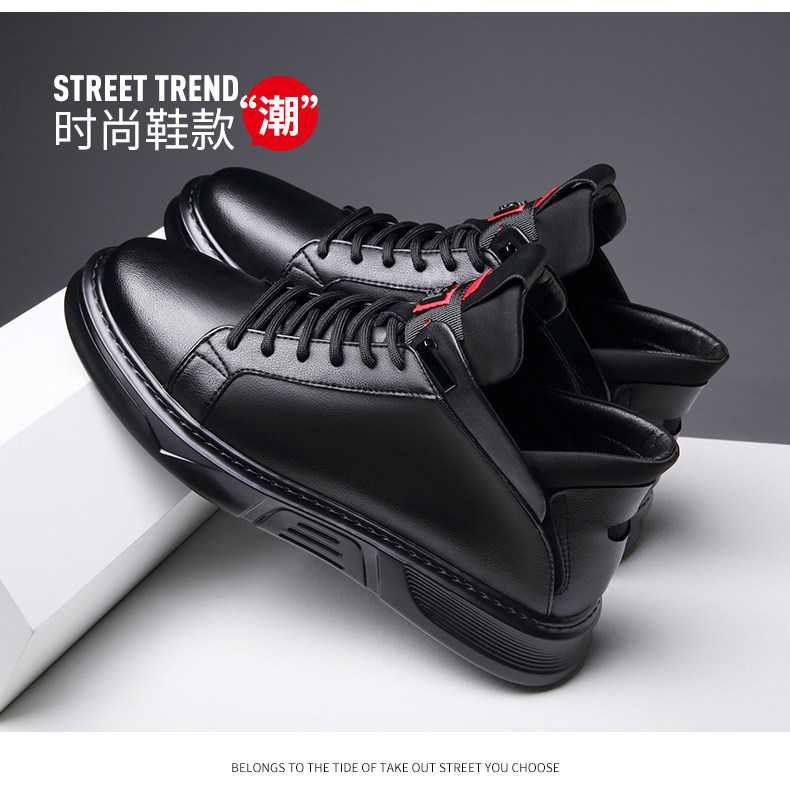 Осенне-зимние новые повседневные кожаные туфли для мужчин, натуральная кожа, универсальные мужские туфли с высоким берцем, а также бархатные теплые хлопковые туфли, модные кроссовки в корейском стиле.