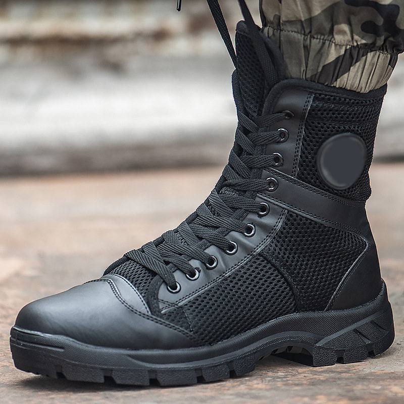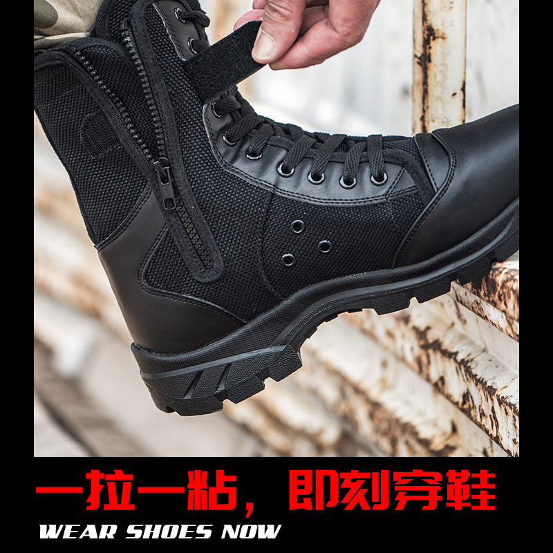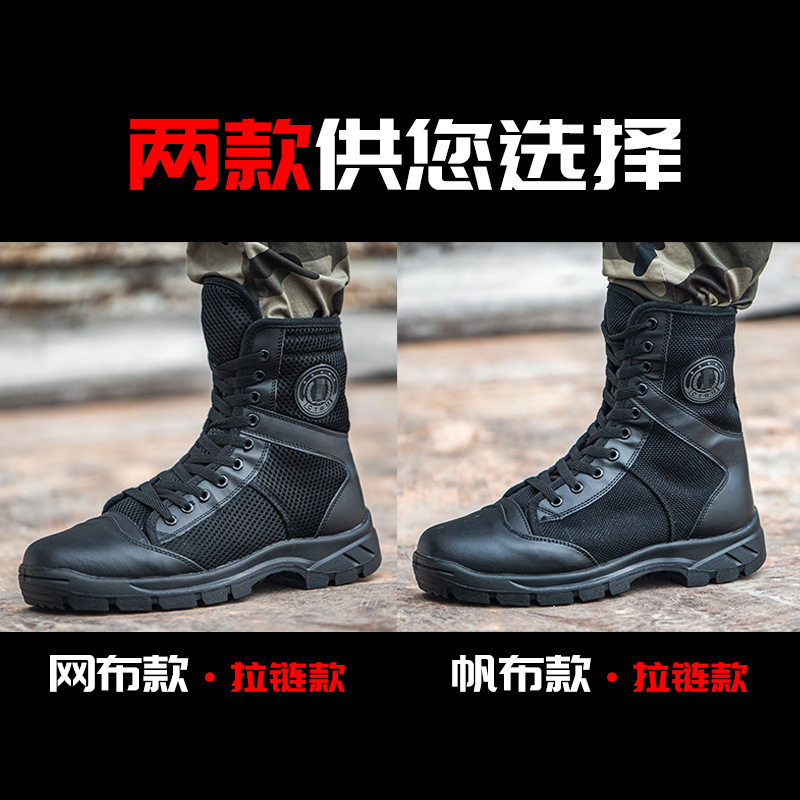 Весенние и летние ботинки мужские специальные солдаты с высоким уровнем на молнии на молнии дышащие легкие бои бои боевые ботинки Мужские занятия по безопасности на холсте обувь