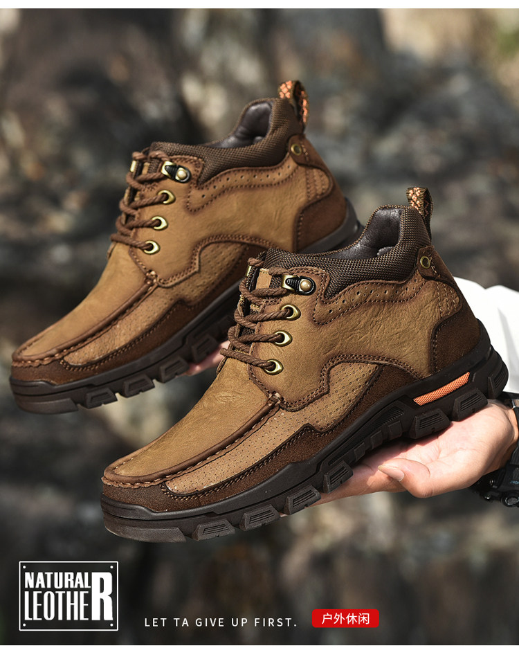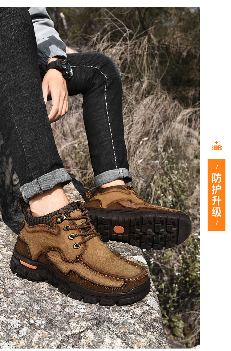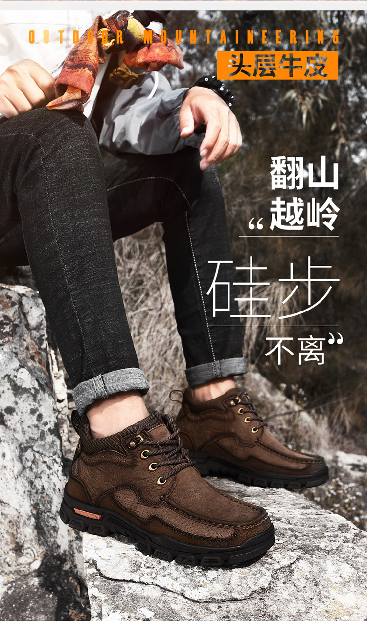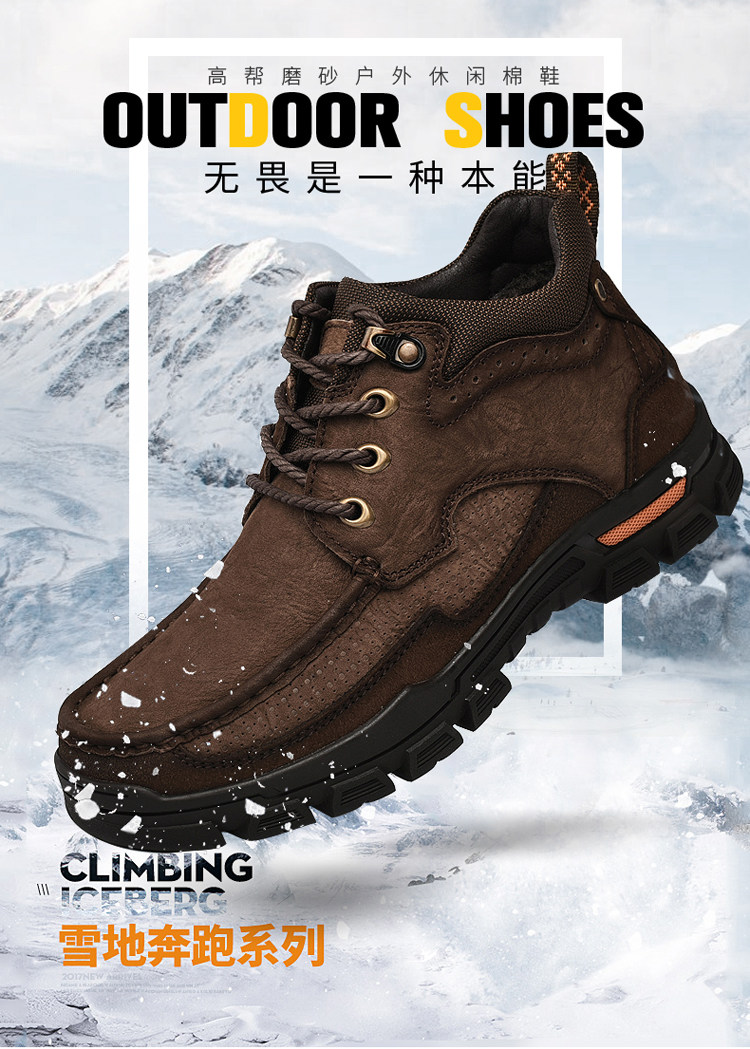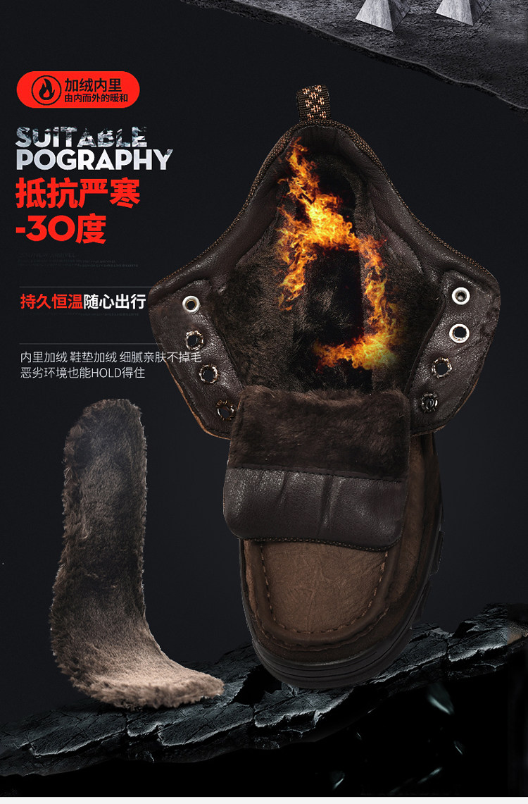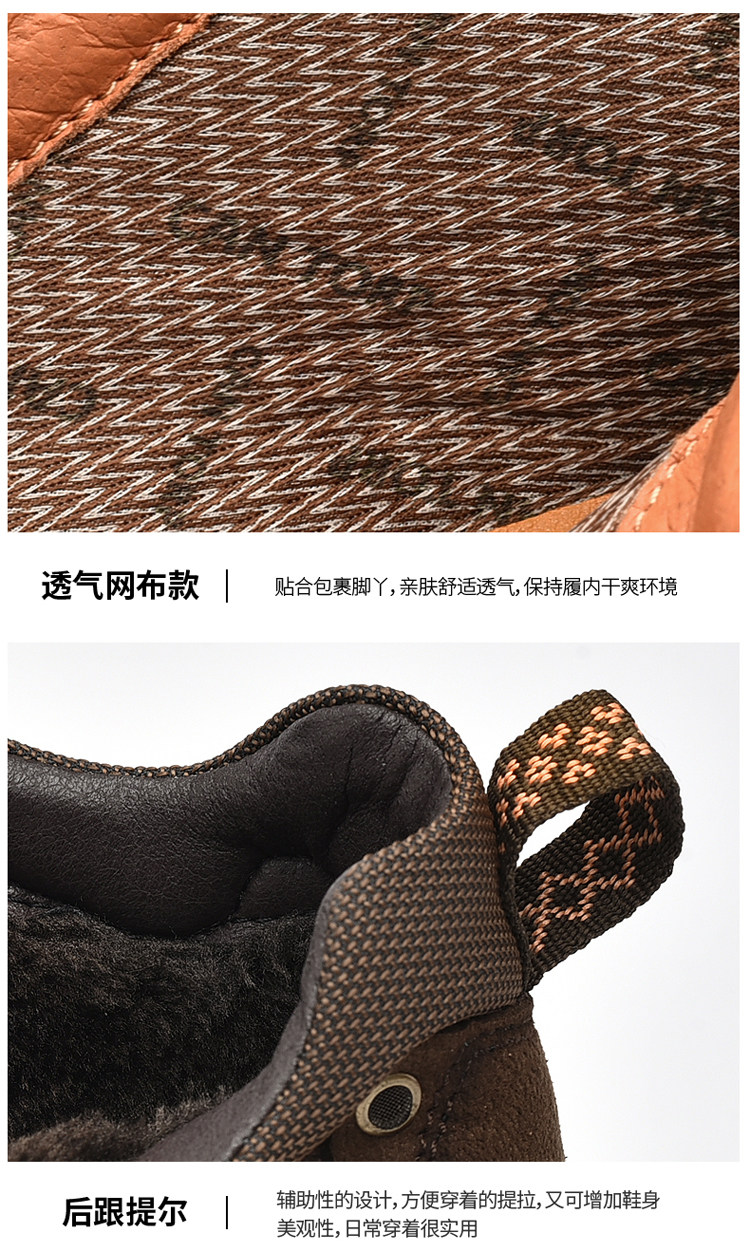 Huagang верблюжья хлопчатобумажная мужская обувь из натуральной кожи, зимняя теплая бархатная повседневная кожаная обувь на толстой подошве с высоким берцем для отцов среднего и пожилого возраста