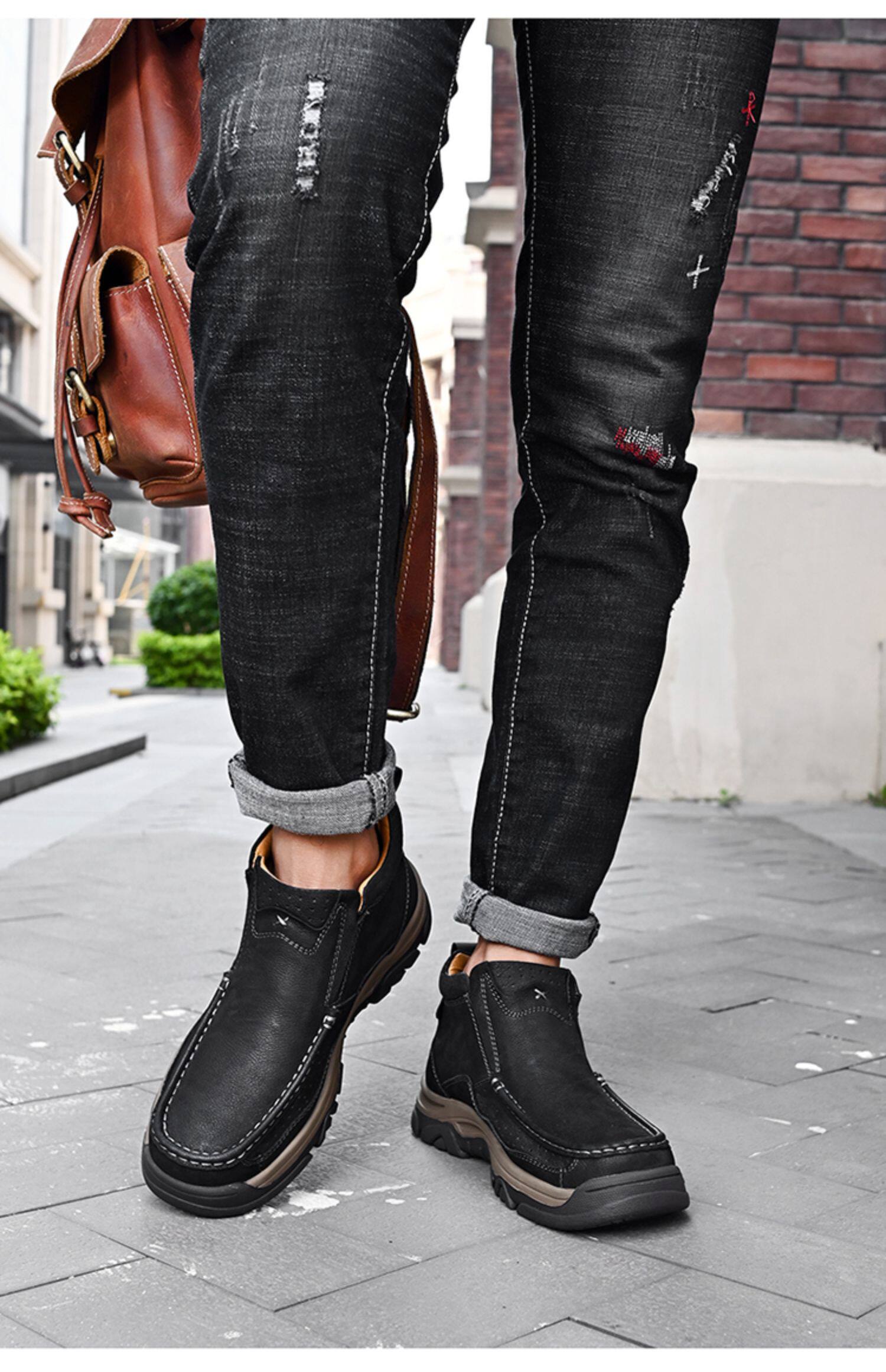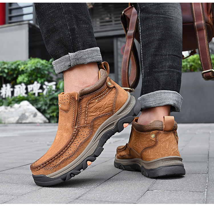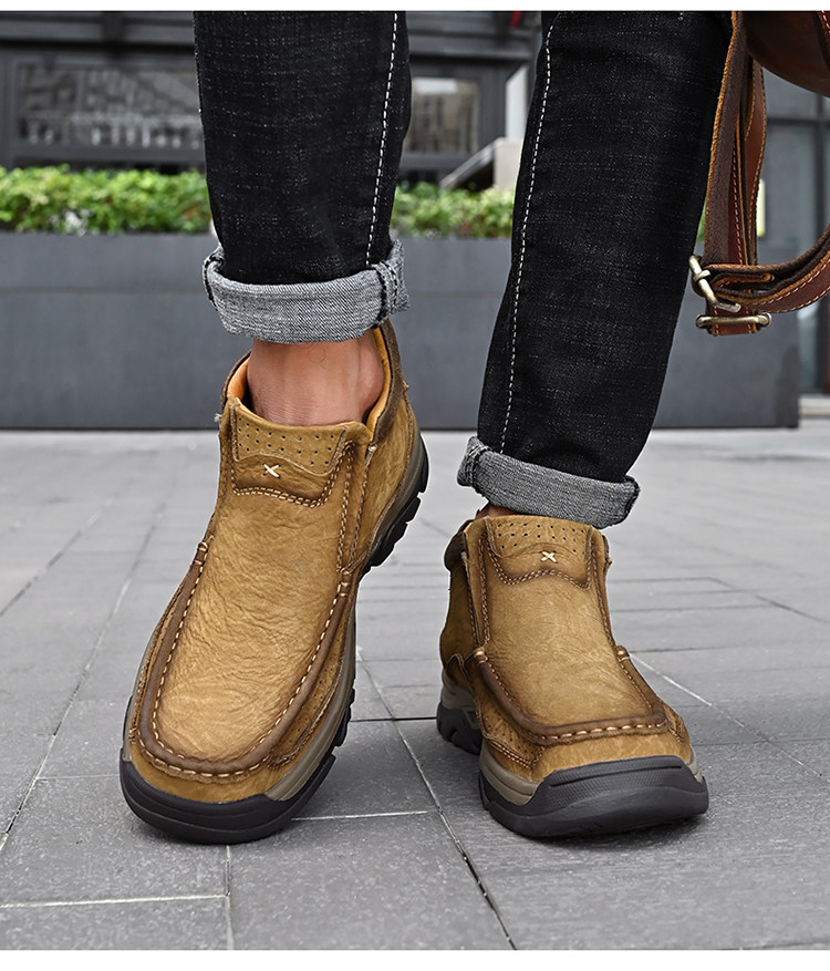 Мужская обувь Huagang Camel из натуральной кожи, зимние повседневные кожаные туфли большого размера с высоким берцем, мужские туфли без шнуровки на толстой подошве для пап среднего и пожилого возраста
