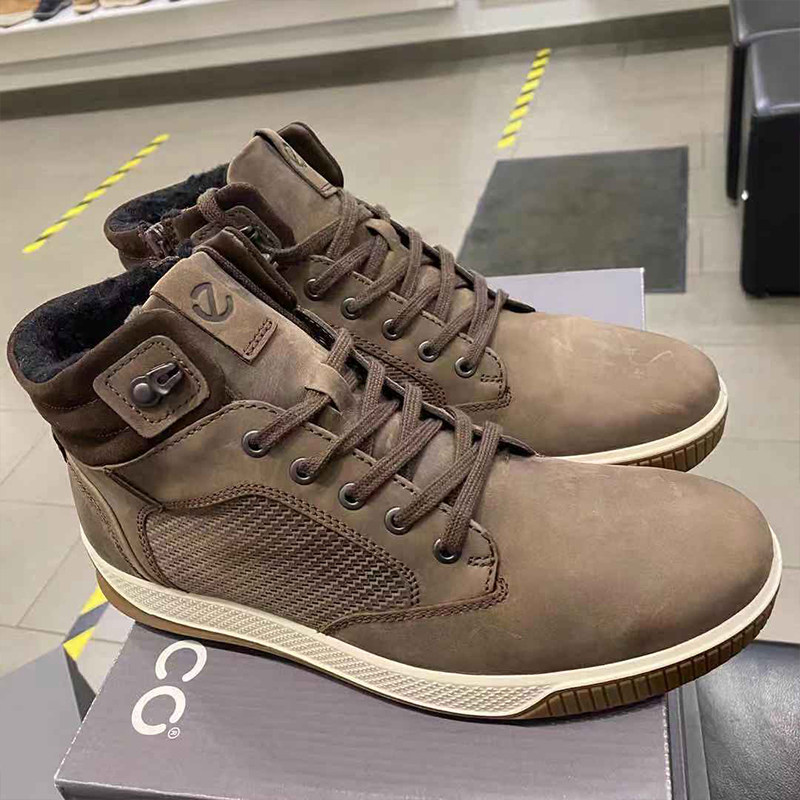 Ecco, обувь, демисезонные утепленные удерживающие тепло кожаные кроссовки для отдыха для кожаной обуви, воловья кожа