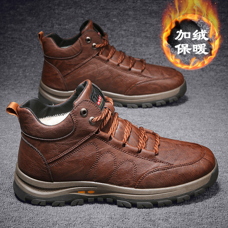 Утепленная удерживающая тепло нескользящая обувь, мужские спортивные альпинистские сапоги для кожаной обуви