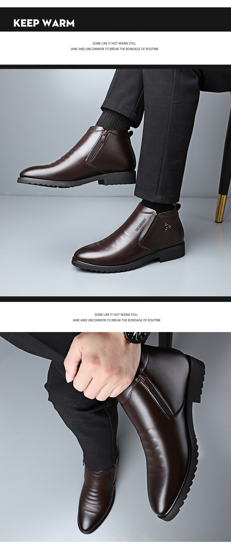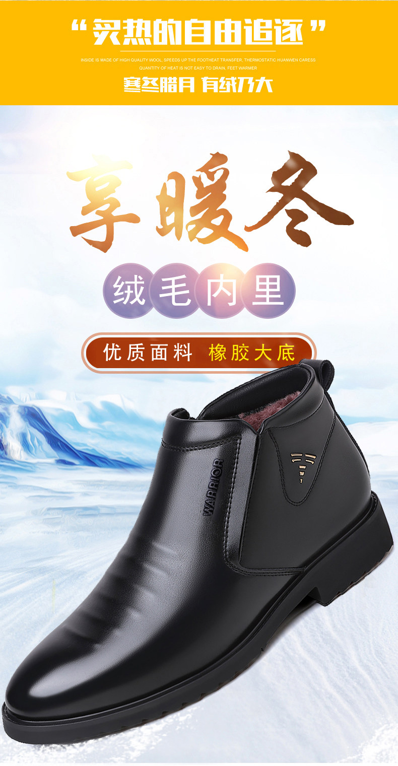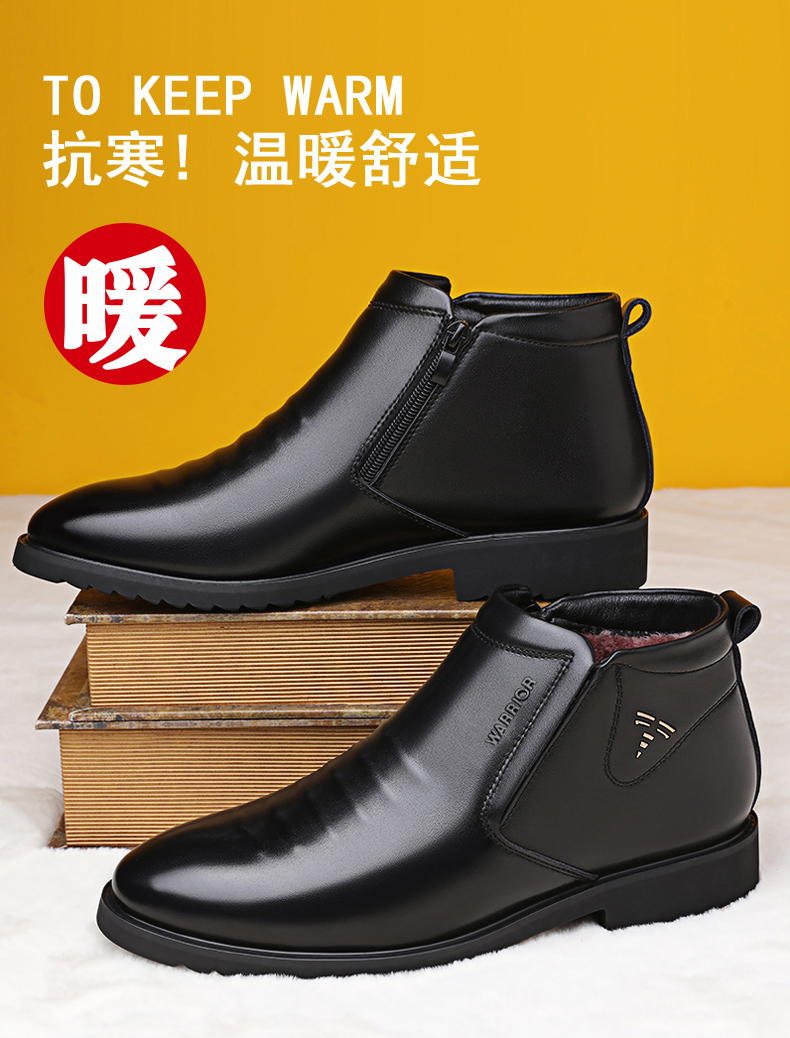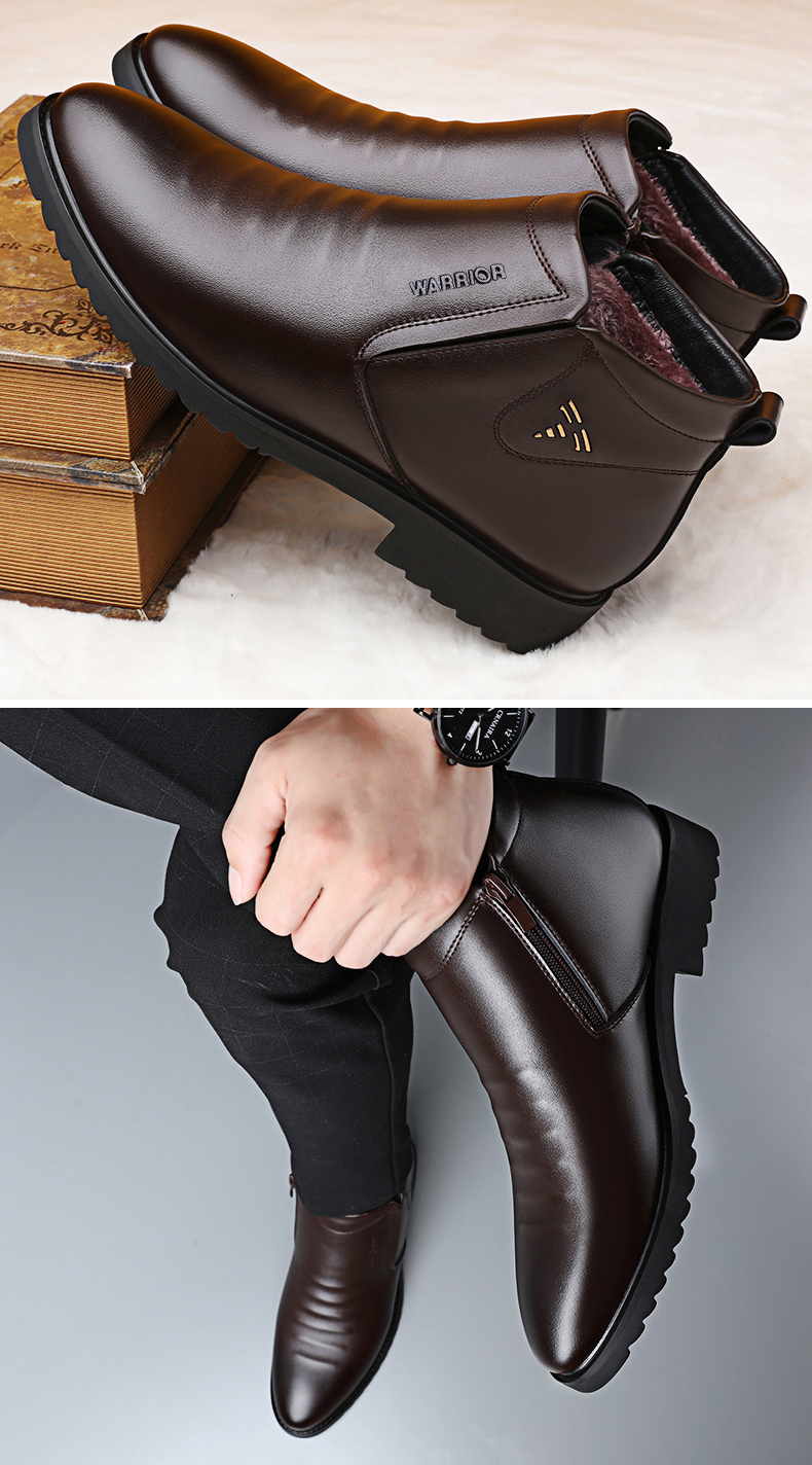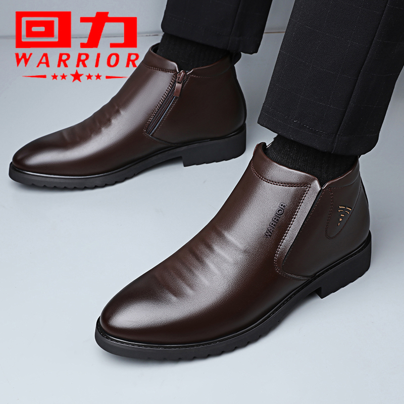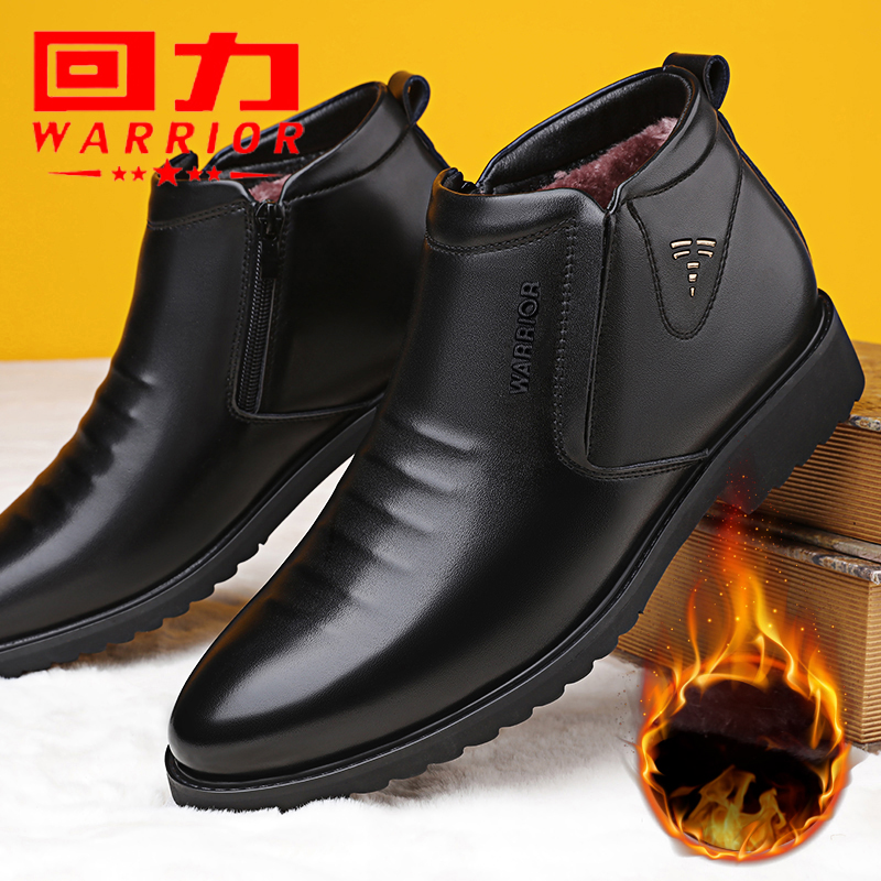 Warrior, зимние высокие туфли, классический костюм, флисовая повседневная обувь, удерживающие тепло сапоги с молнией, из натуральной кожи
