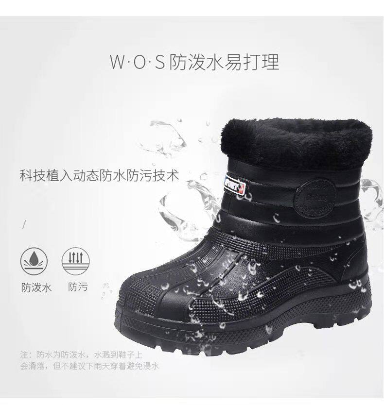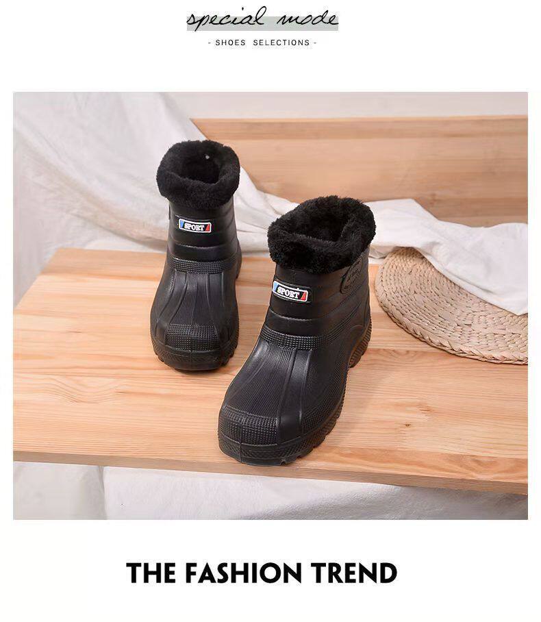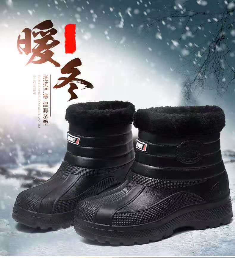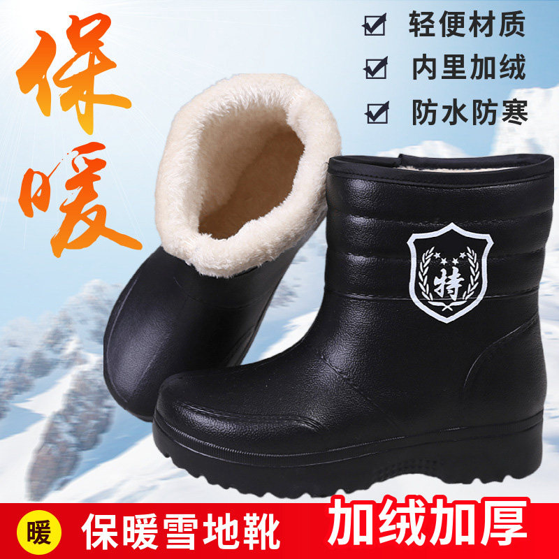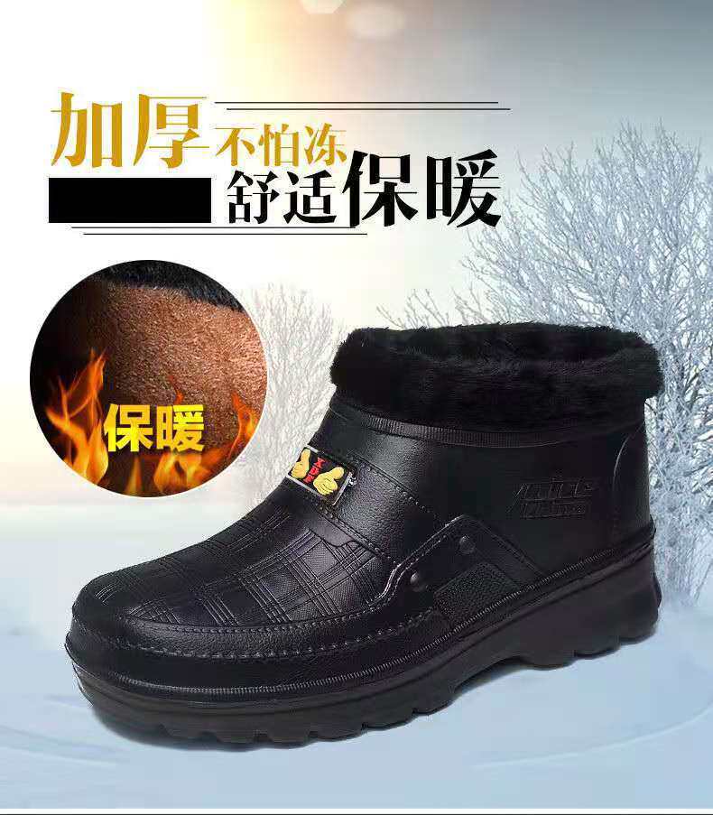 Мужские флисовые резиновые сапоги, теплые и нескользящие, зимние резиновые сапоги, водонепроницаемые зимние ботинки, рабочая обувь для кухни, высокие хлопковые туфли для хранения в холодильнике.