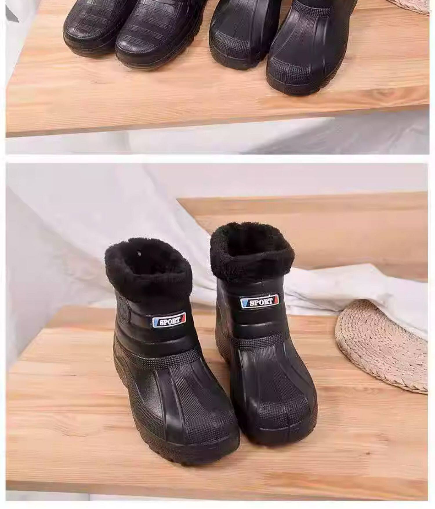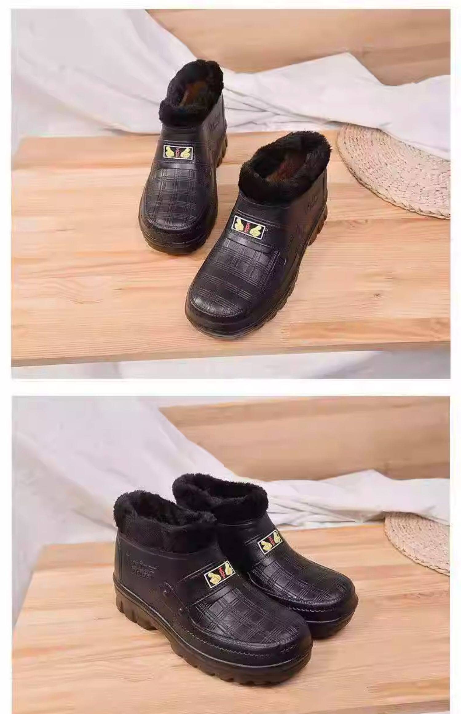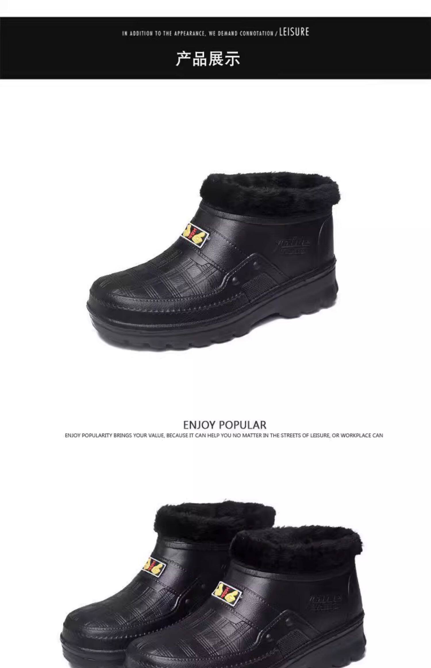 Мужские флисовые резиновые сапоги, теплые и нескользящие, зимние резиновые сапоги, водонепроницаемые зимние ботинки, рабочая обувь для кухни, высокие хлопковые туфли для хранения в холодильнике.