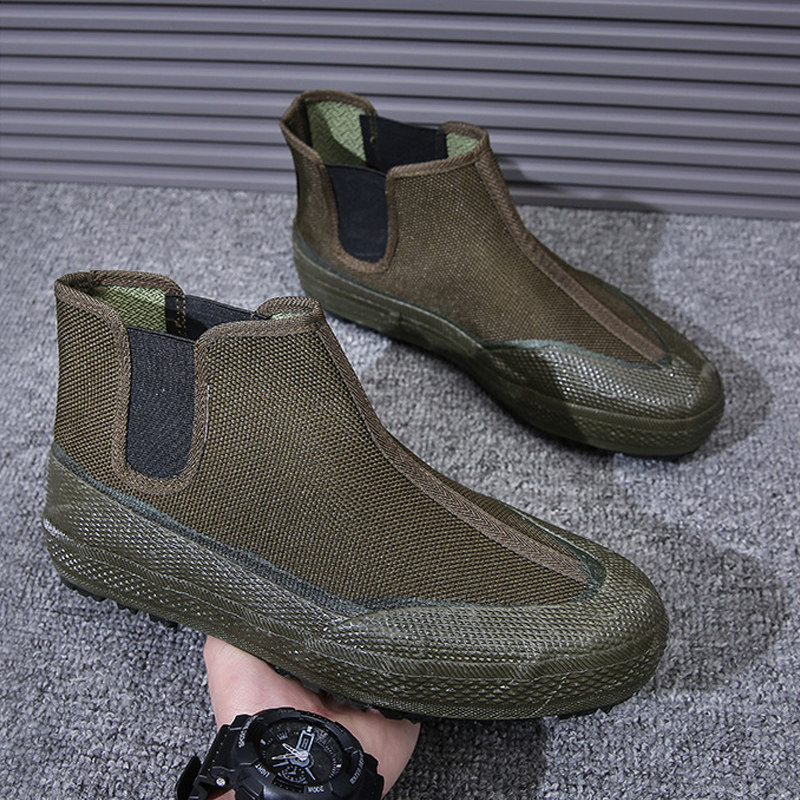 Обувь Jiefang, четырехсезонная мужская и женская обувь для уличных работ на ферме, стройплощадка, износостойкая, дышащая, нескользящая резиновая обувь с высоким верхом из парусины.