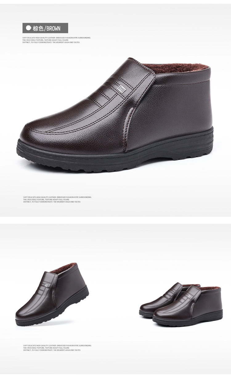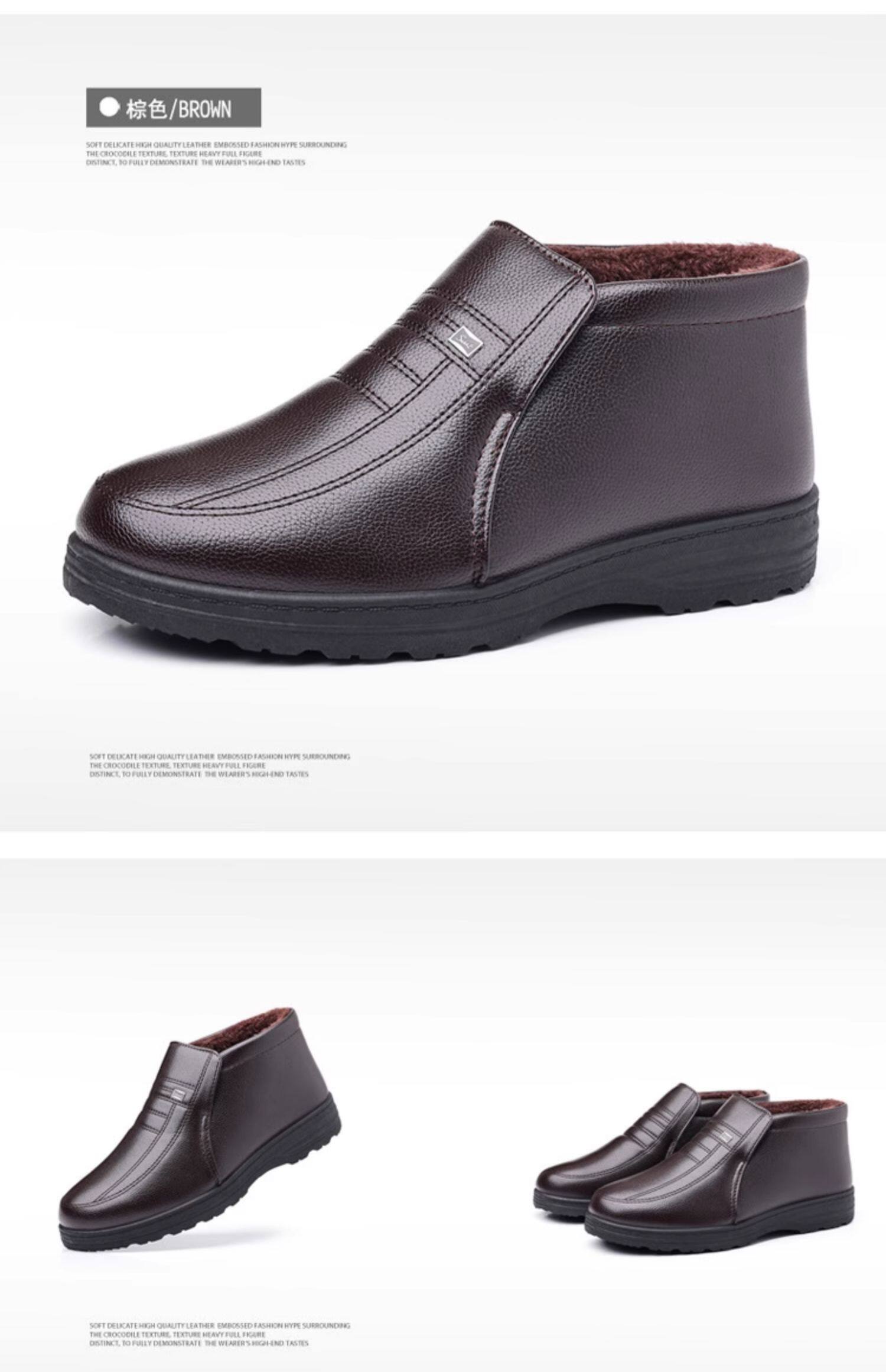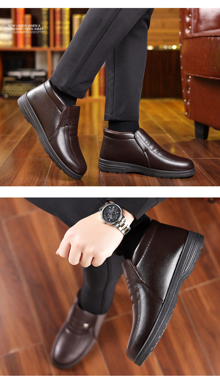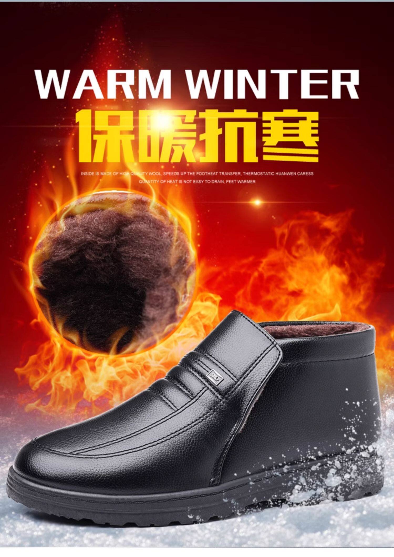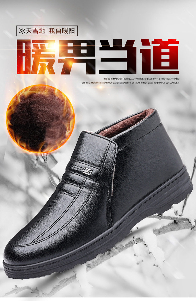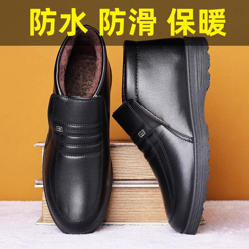 Теплая кожаная обувь для мужчин среднего и пожилого возраста, зимние папины бархатные и утолщенные хлопковые туфли, водонепроницаемые и нескользящие повседневные хлопковые ботинки с высоким берцем.