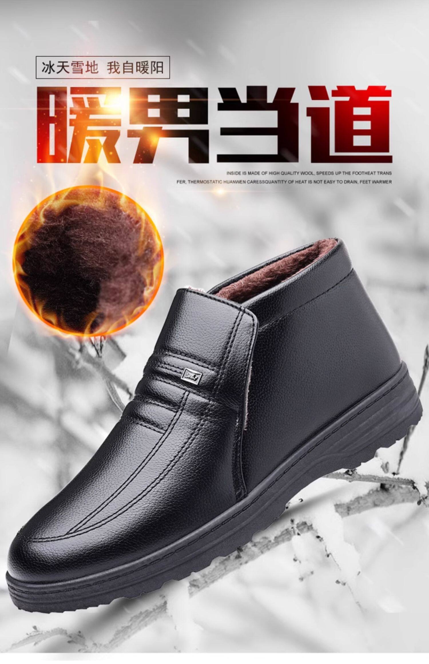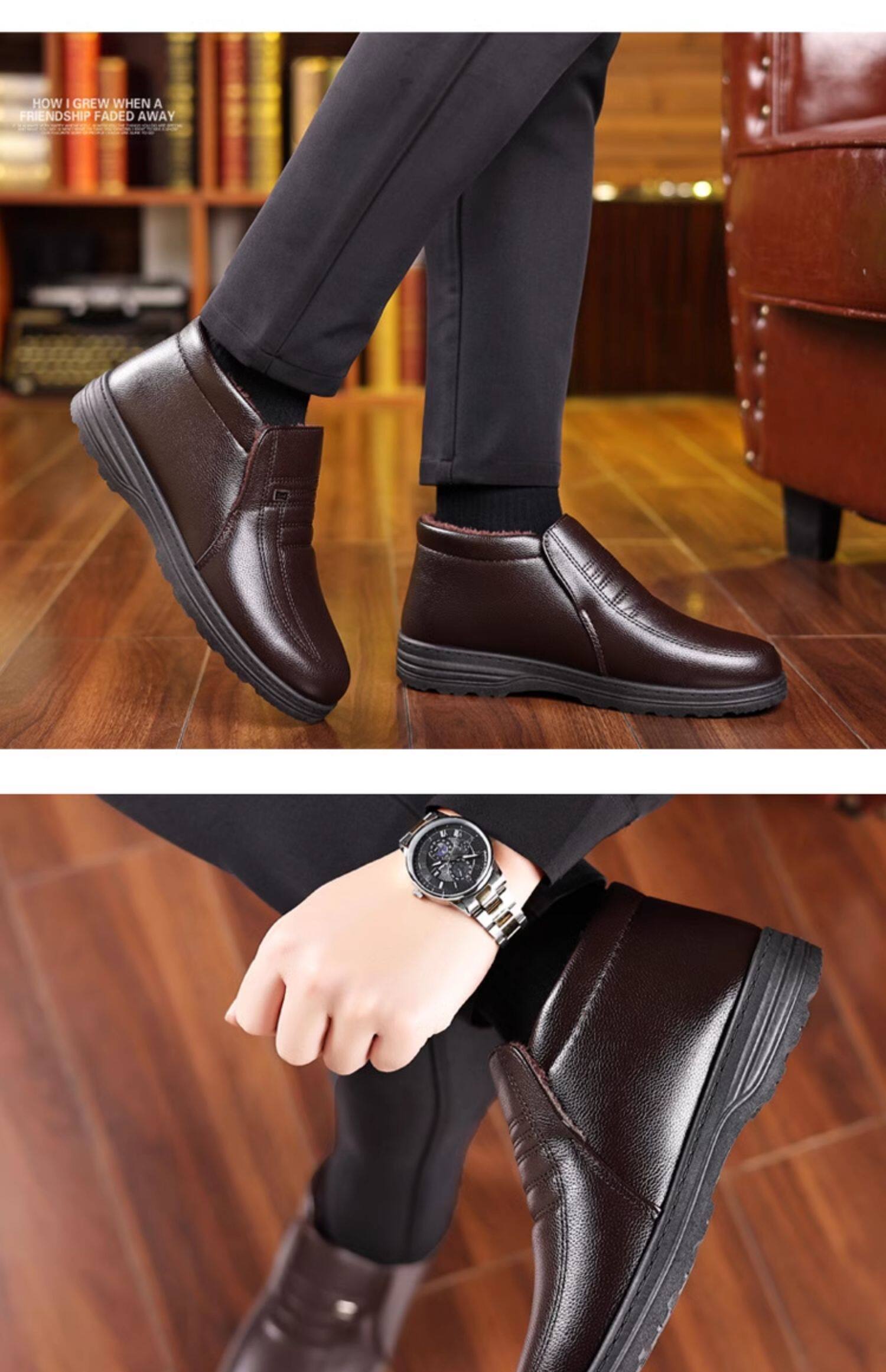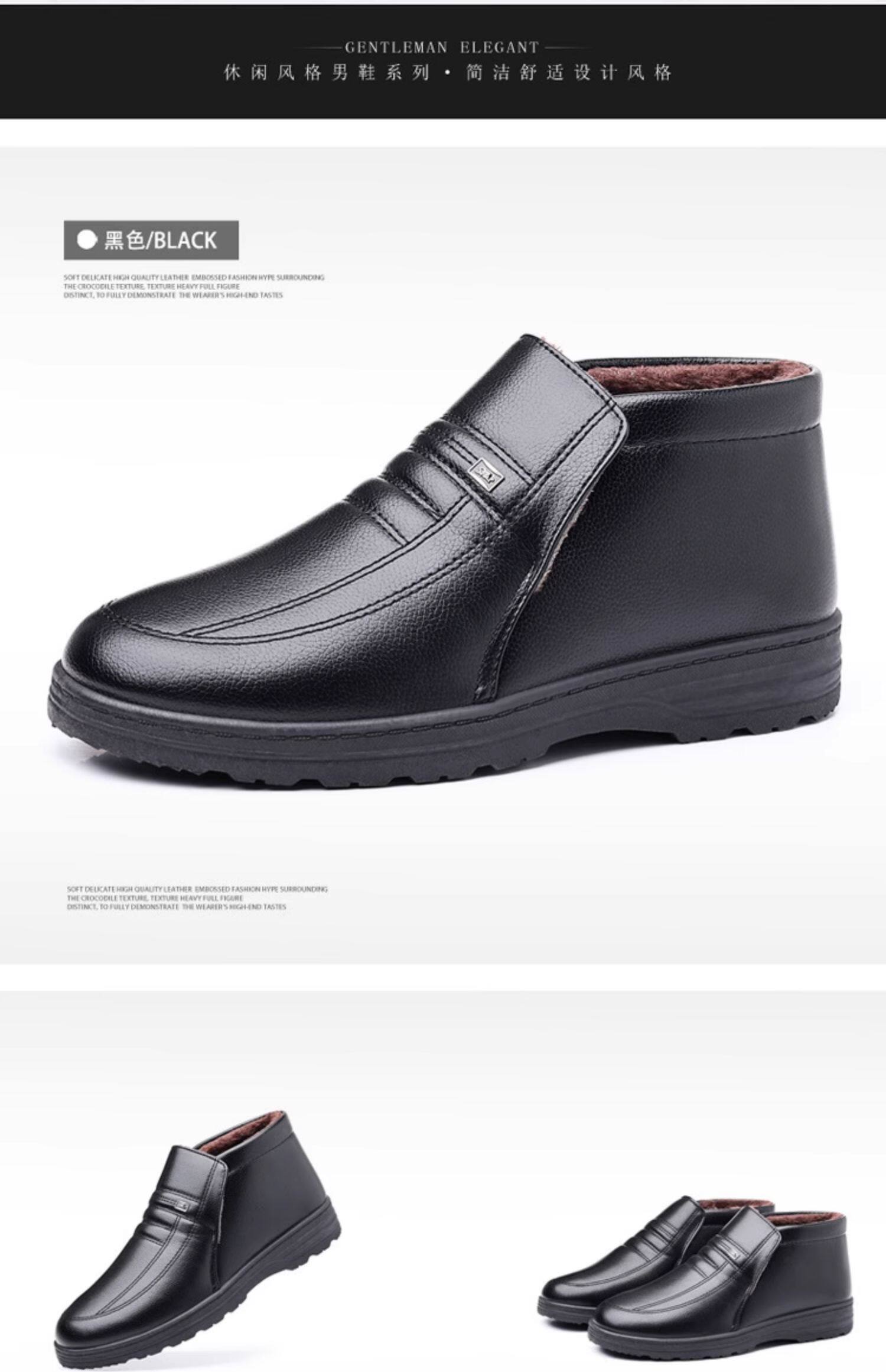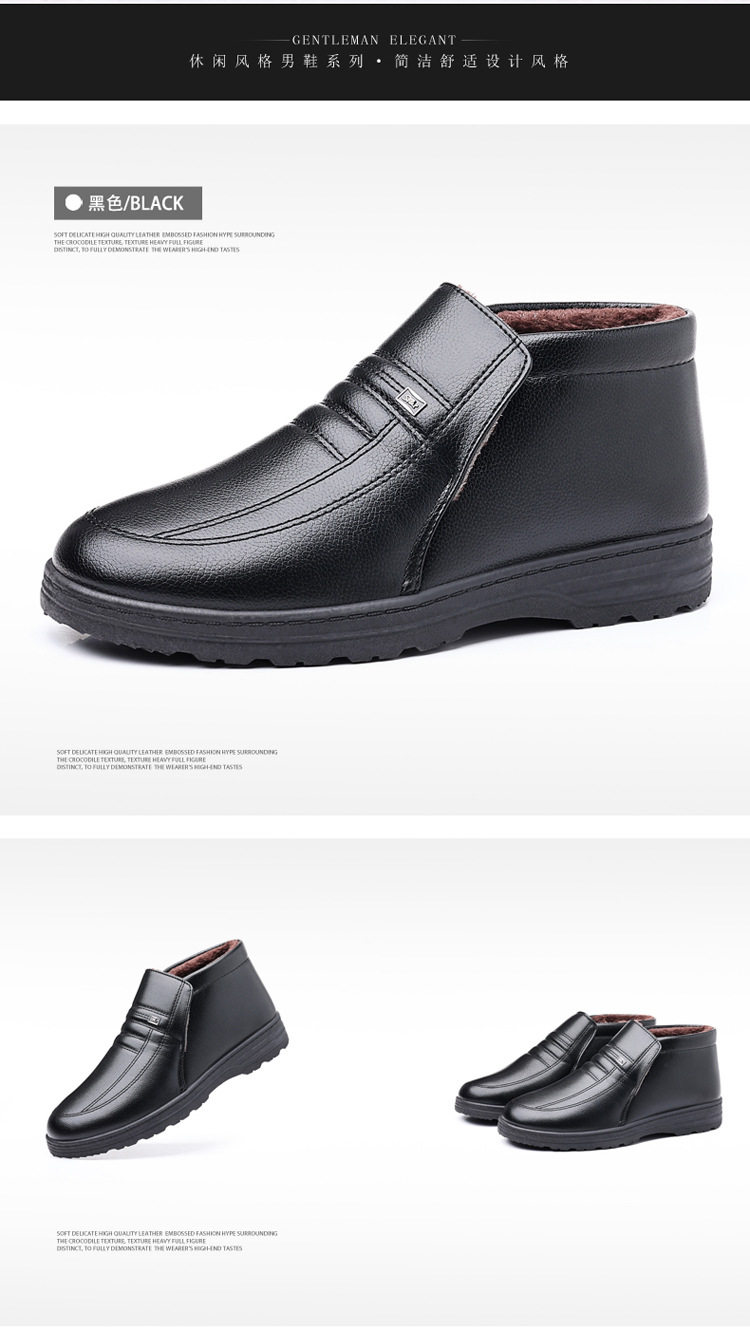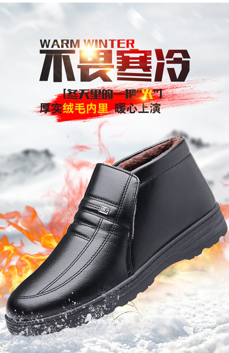 Теплая кожаная обувь для мужчин среднего и пожилого возраста, зимние папины бархатные и утолщенные хлопковые туфли, водонепроницаемые и нескользящие повседневные хлопковые ботинки с высоким берцем.