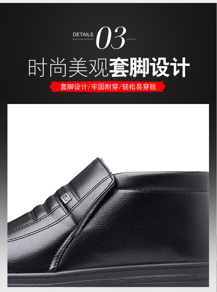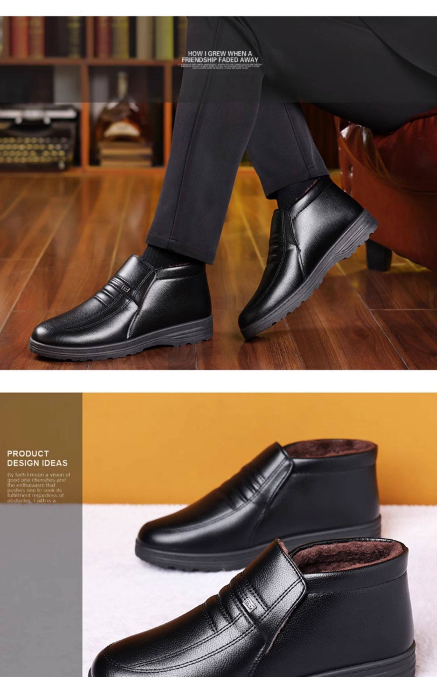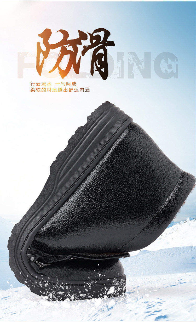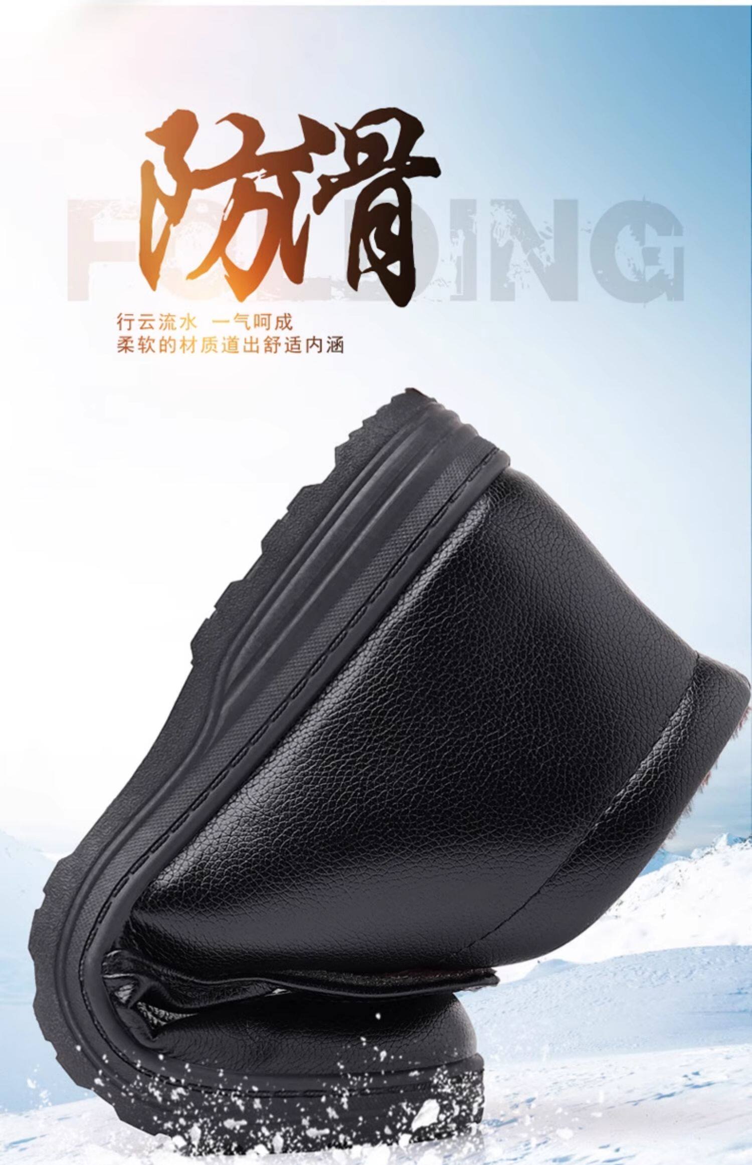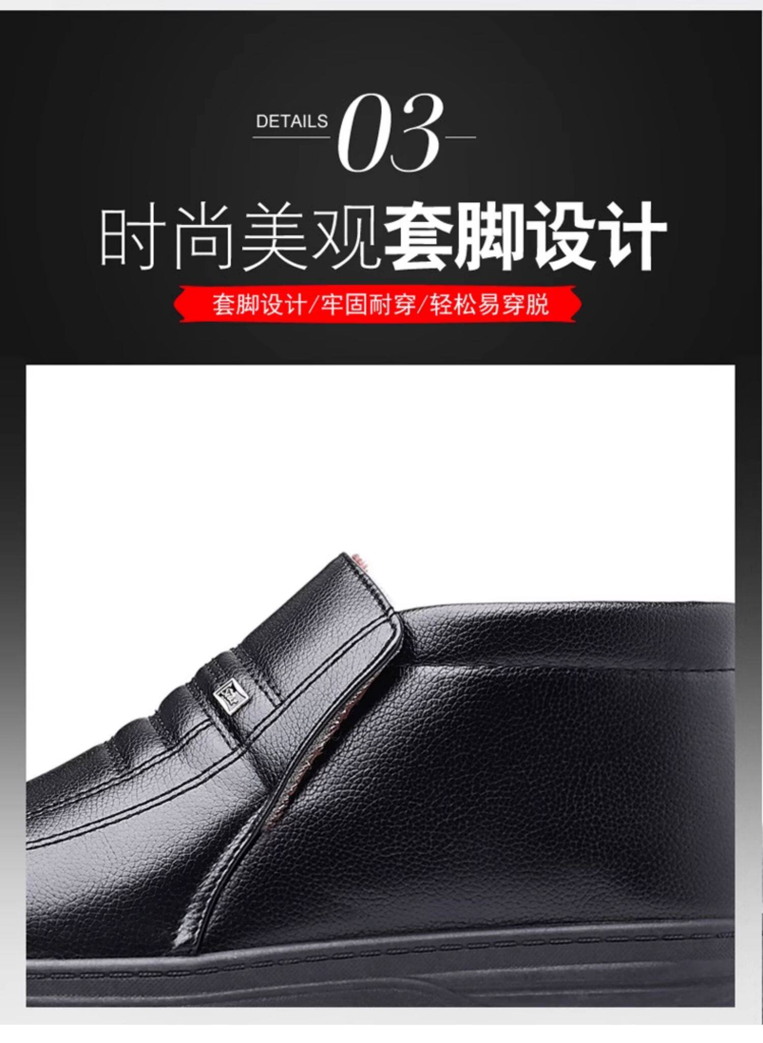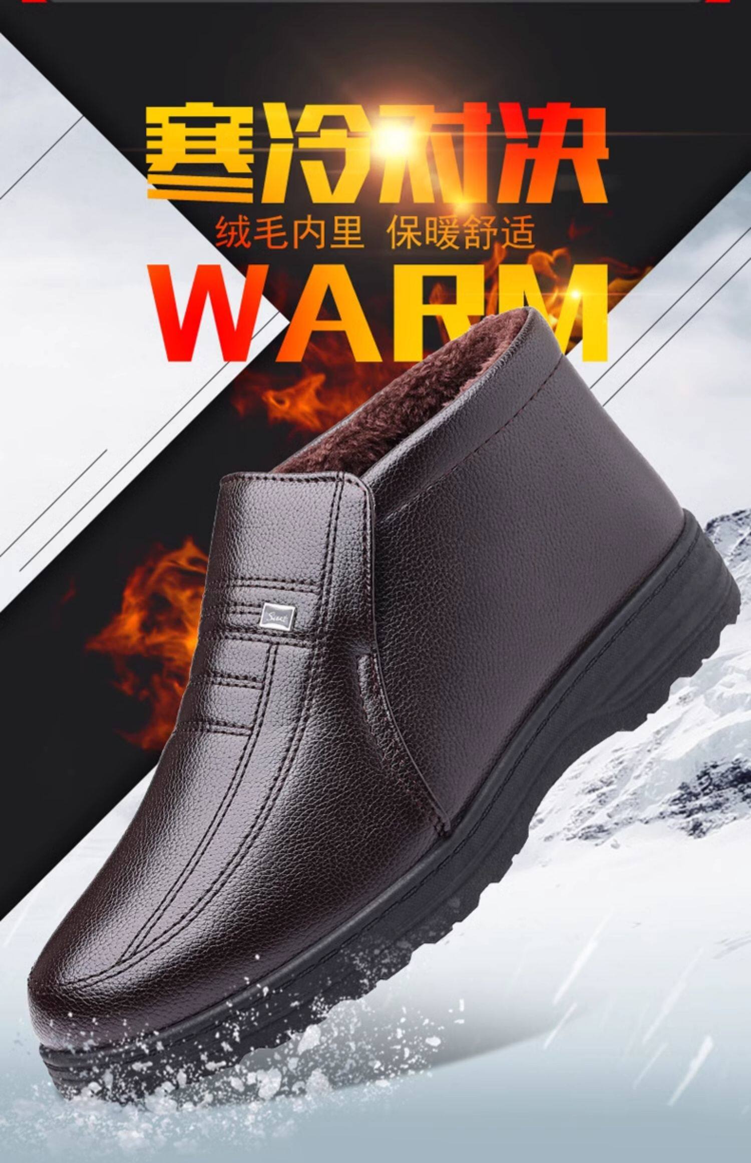 Теплая кожаная обувь для мужчин среднего и пожилого возраста, зимние папины бархатные и утолщенные хлопковые туфли, водонепроницаемые и нескользящие повседневные хлопковые ботинки с высоким берцем.