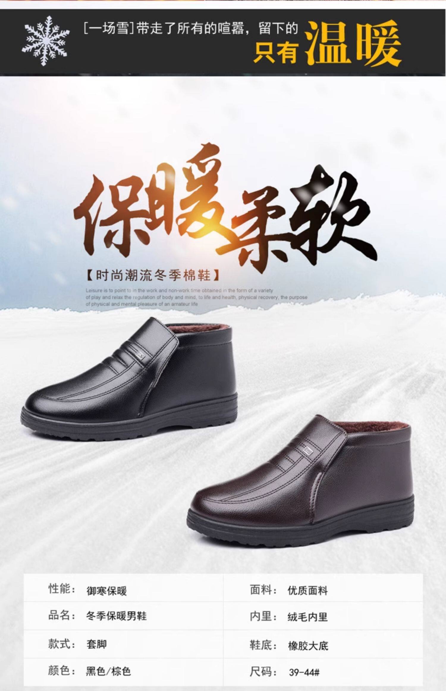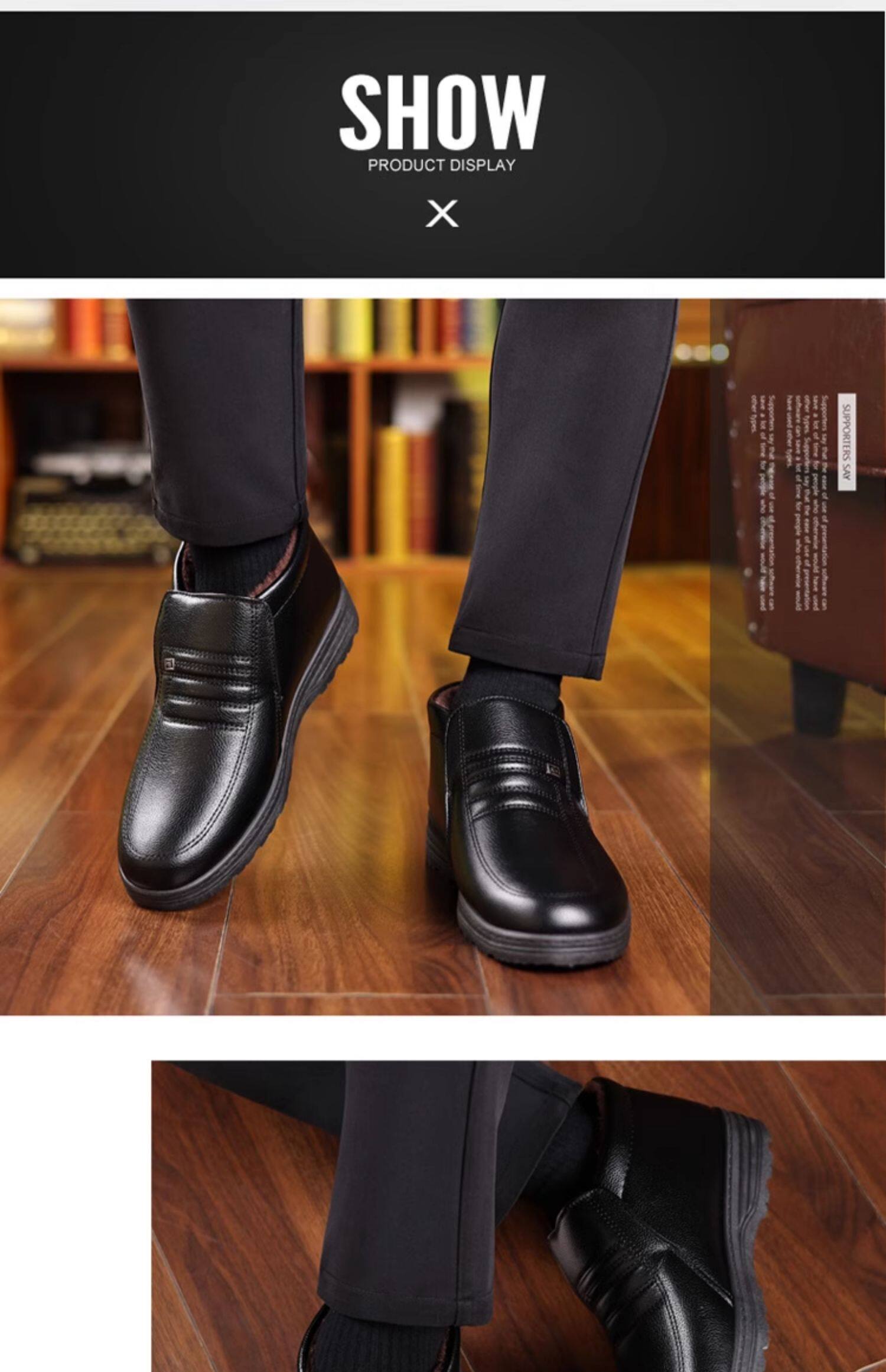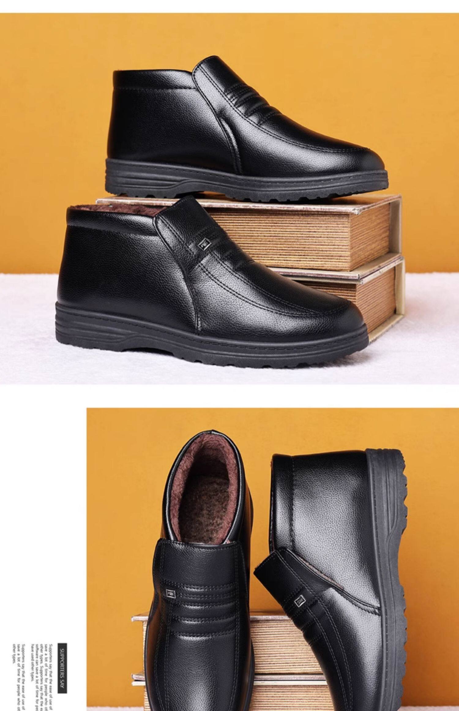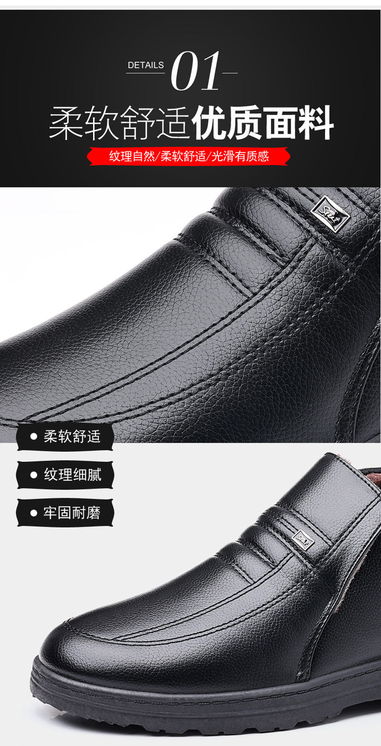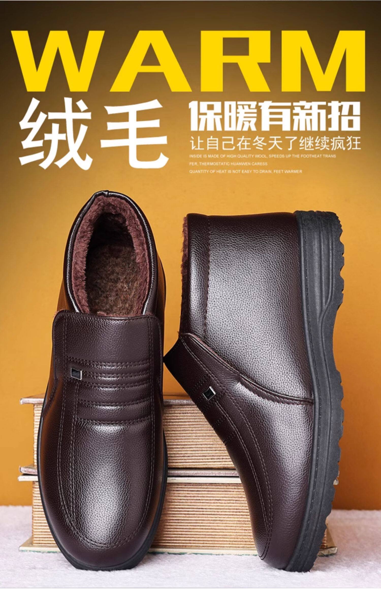 Теплая кожаная обувь для мужчин среднего и пожилого возраста, зимние папины бархатные и утолщенные хлопковые туфли, водонепроницаемые и нескользящие повседневные хлопковые ботинки с высоким берцем.